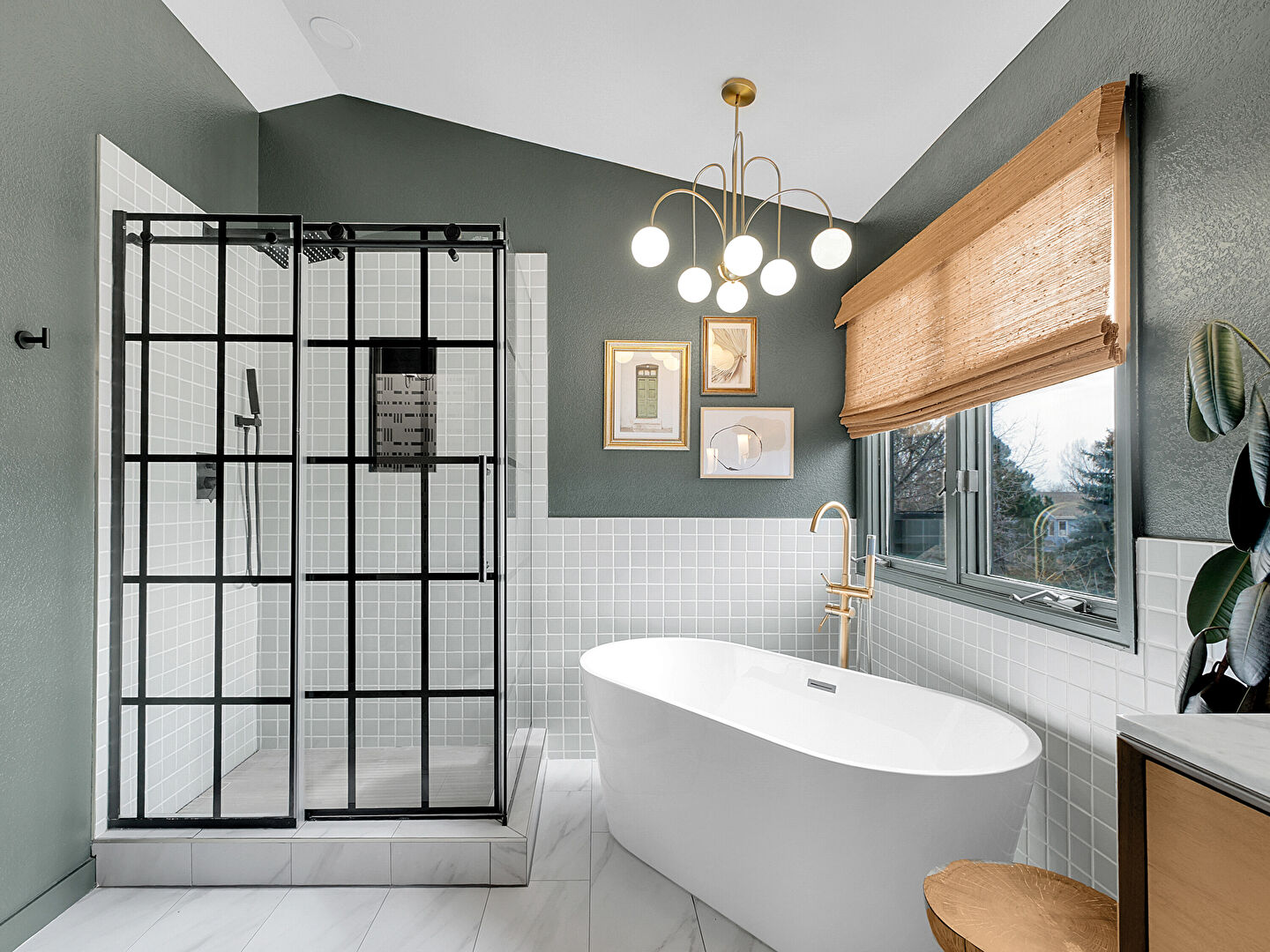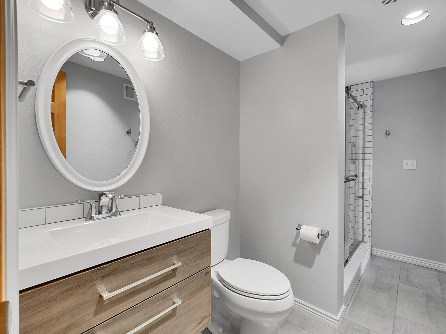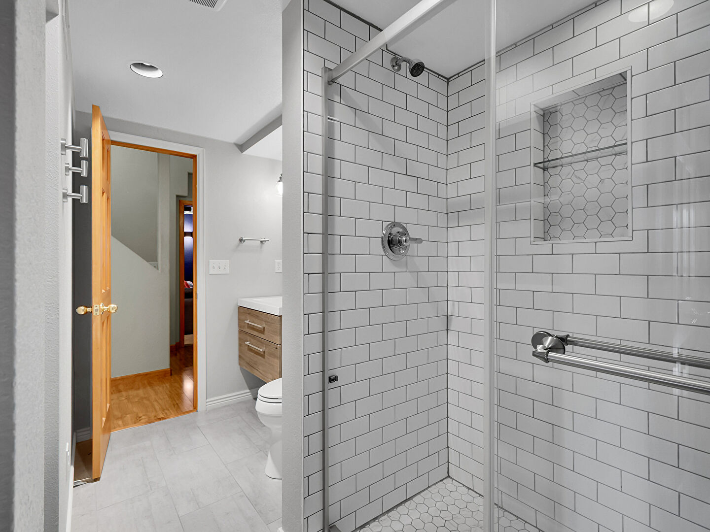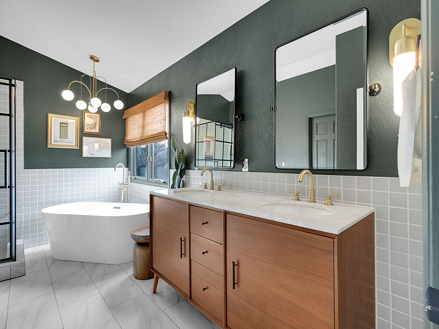 Combined Bath Shower, Double Vanity, Drywall, Ensuite Bathroom, Full Bathroom, Half Bathroom, Marble Finish Floor, Natural Light, Notable Chandelier, Recessed Lighting, Textured Wall, Tile Floor, Tile Wall, Vanity, Vaulted Ceiling, Vent, Wainscot Wall, Baseboards Wall, Double Vanity, Drywall, Natural Light, Vanity, Wainscot Wall