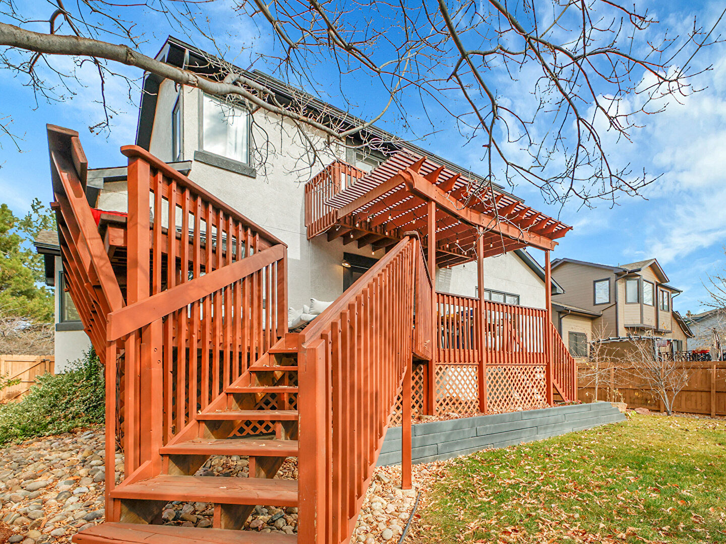 Deck, Downspout, Fence, Lawn, Pergola, Stairs, Stucco Siding, Gutters, Lawn