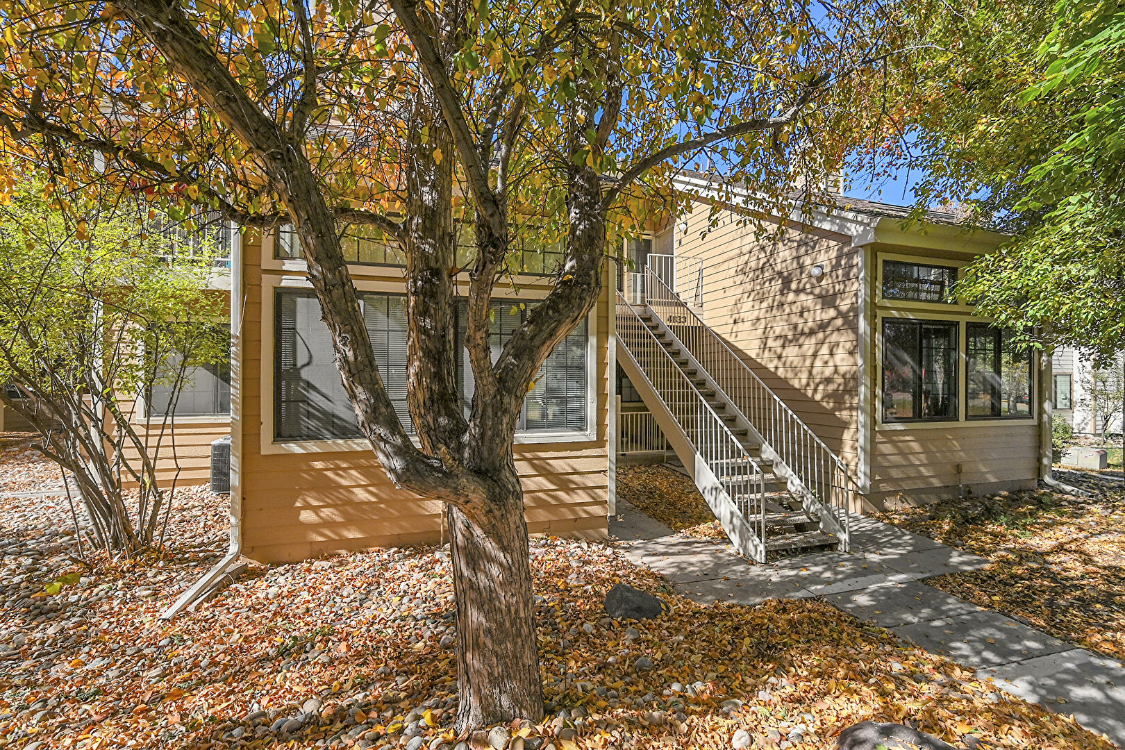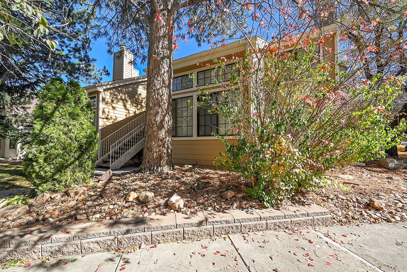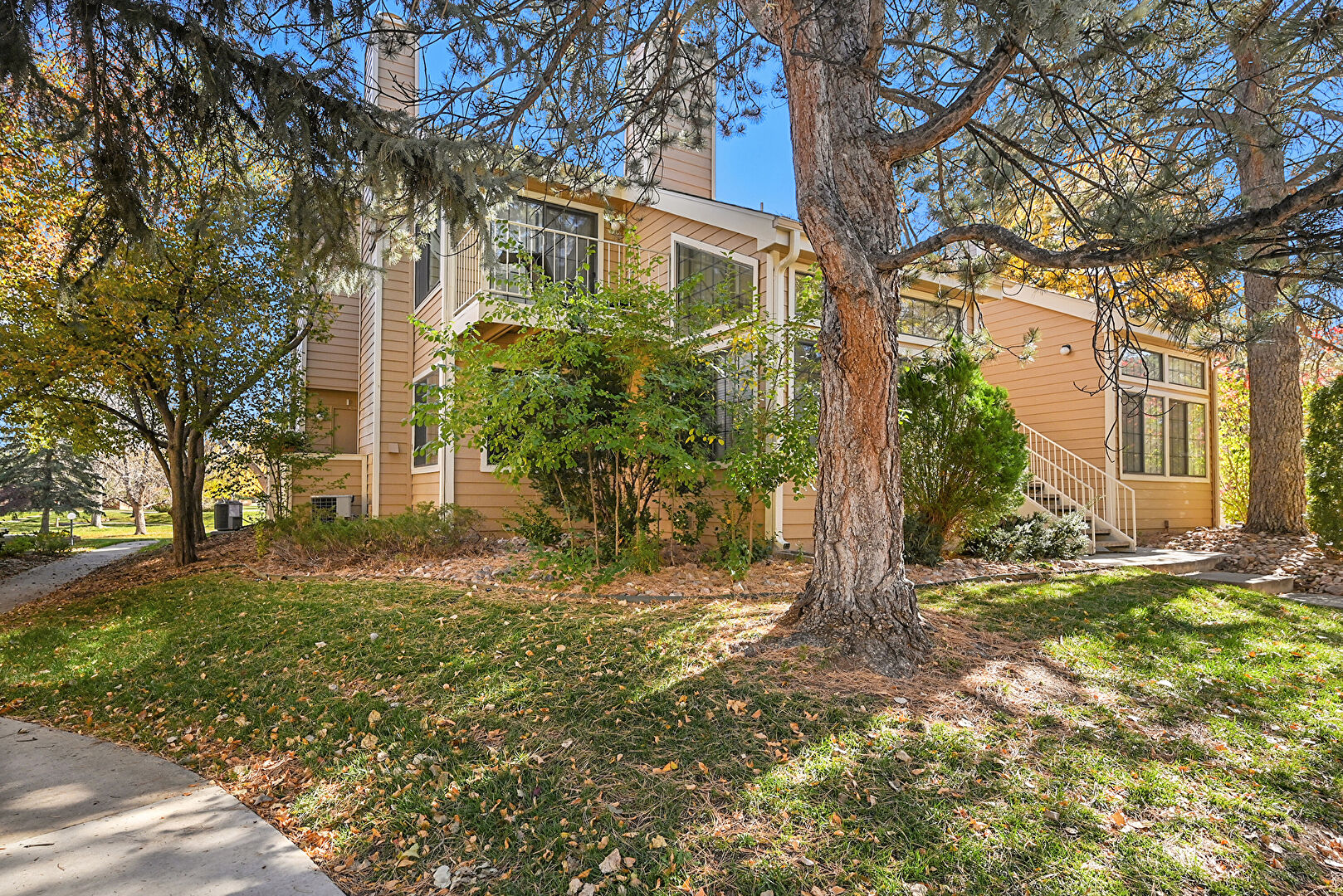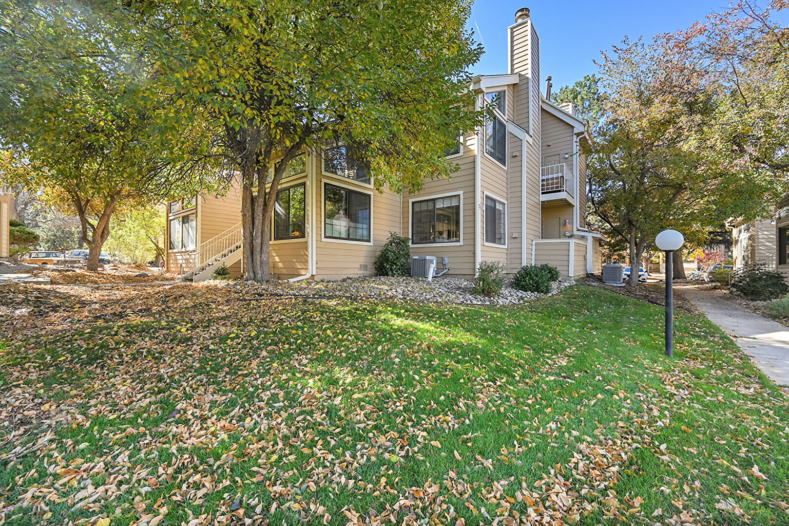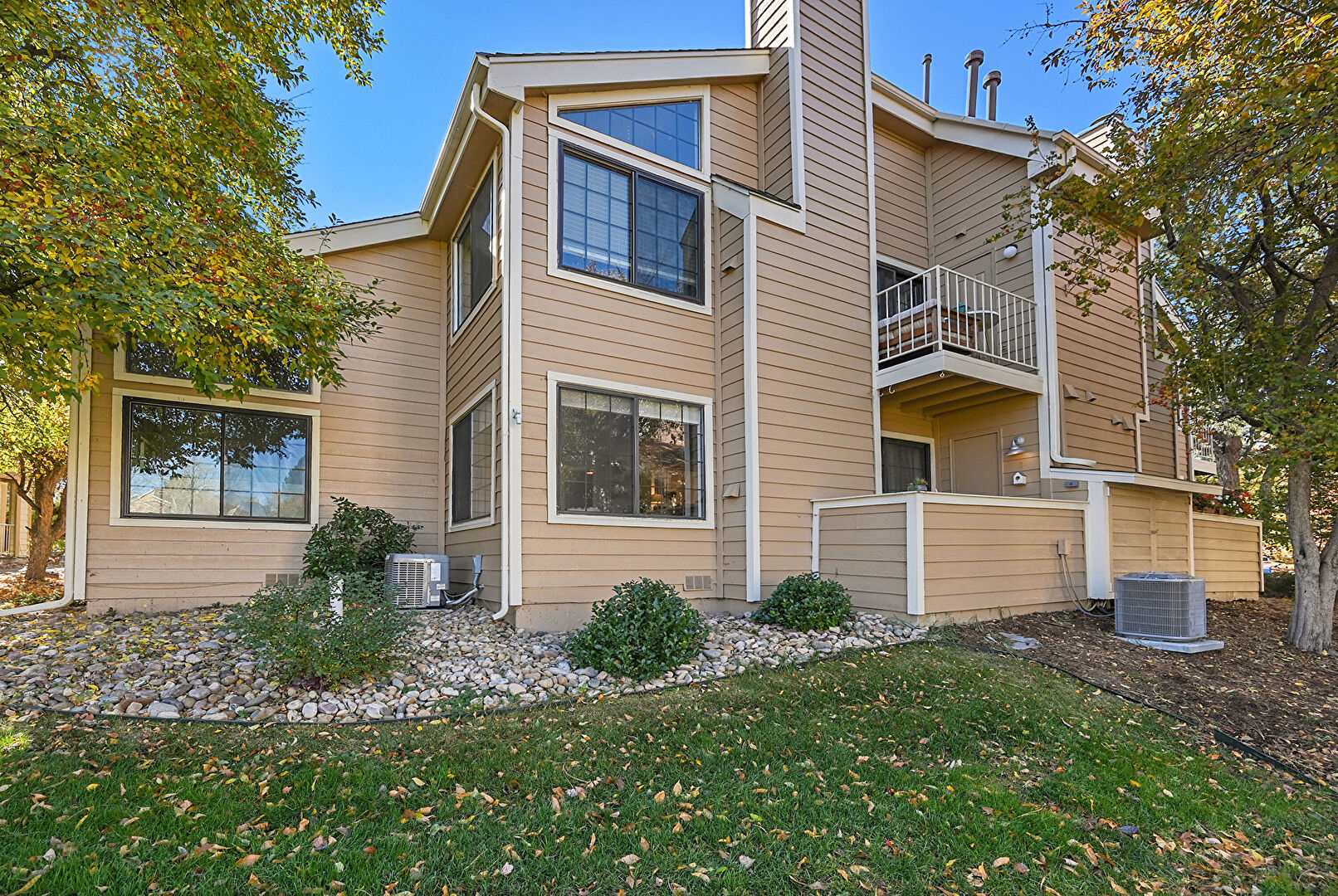 Central Ac, Chimney, Concrete Foundation, Deck, Downspout, Gutters, Horizontal Siding, Lawn, Stairs, Stoop, Balcony, Chimney