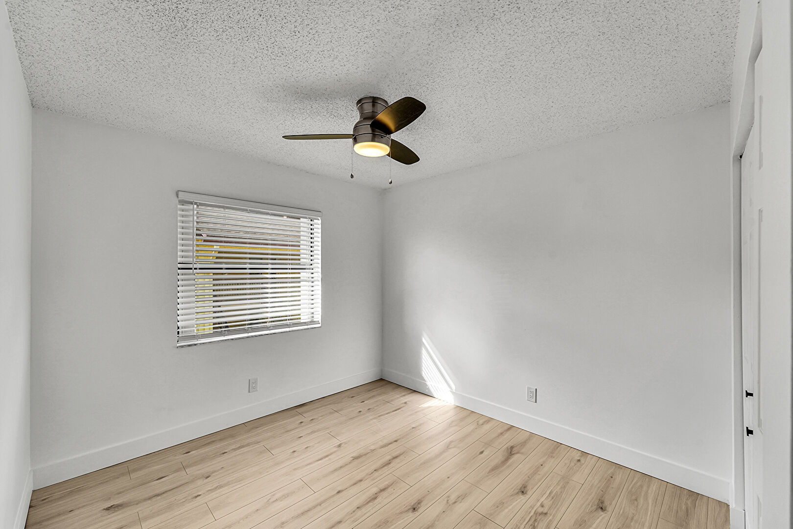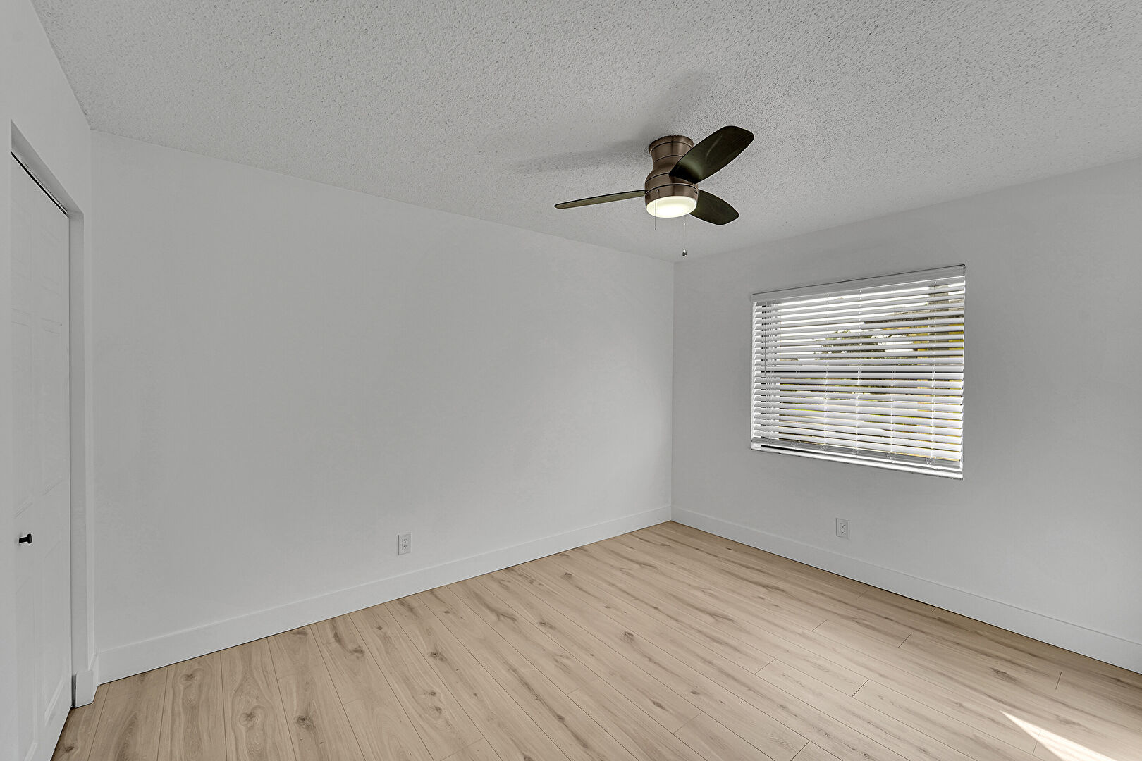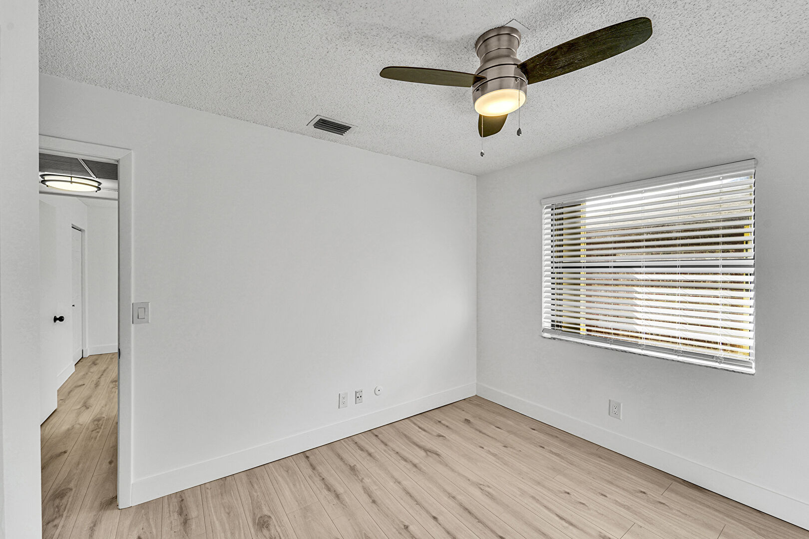 Baseboards Wall, Ceiling Fan, Drywall, Natural Light, Textured Ceiling, Vent, Wood Finish Floor, Baseboards Wall, Closet, Drywall