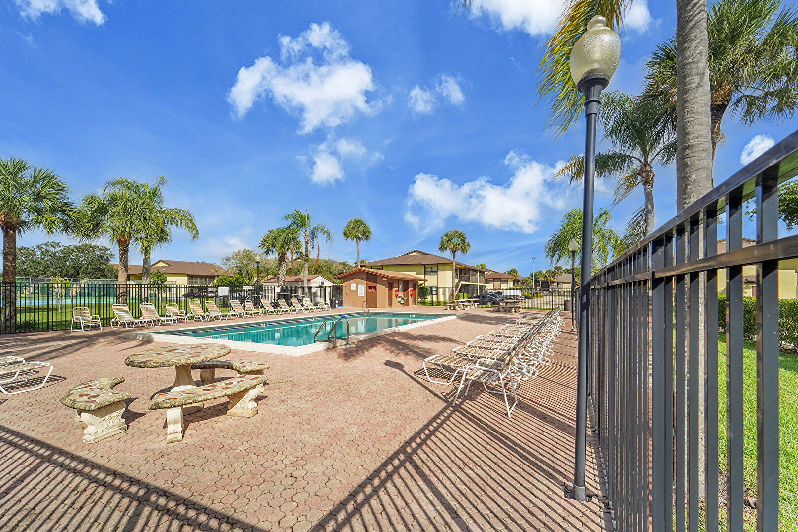 Fence, Fire Extinguisher, Handrail, Patio, Pool, Residential View, Handrail, Patio, Pool