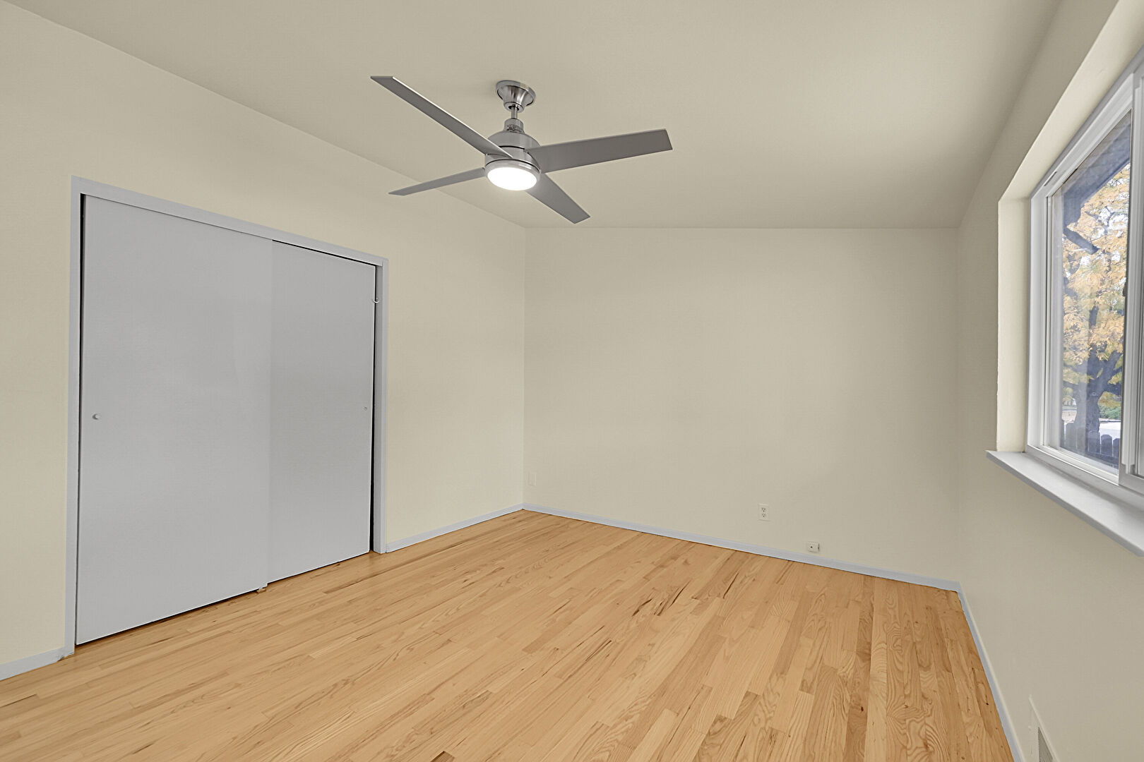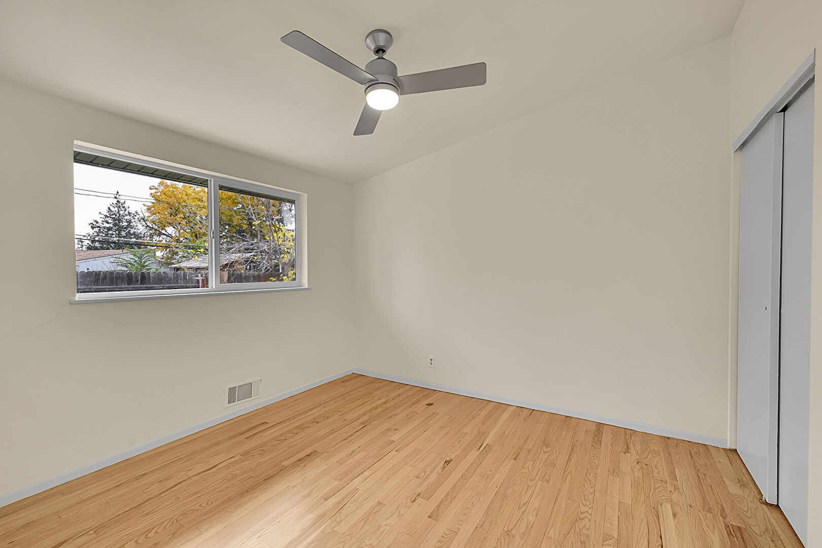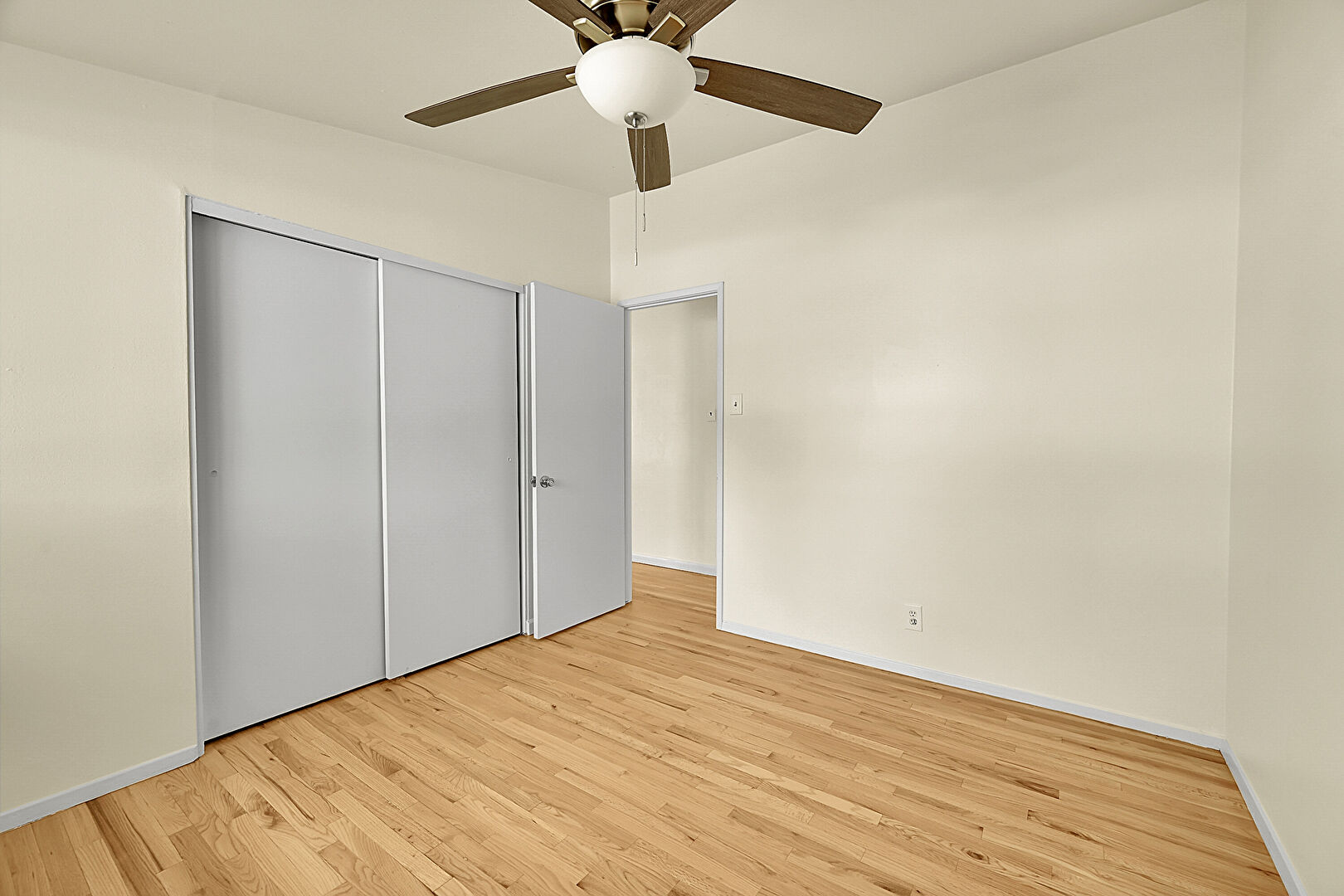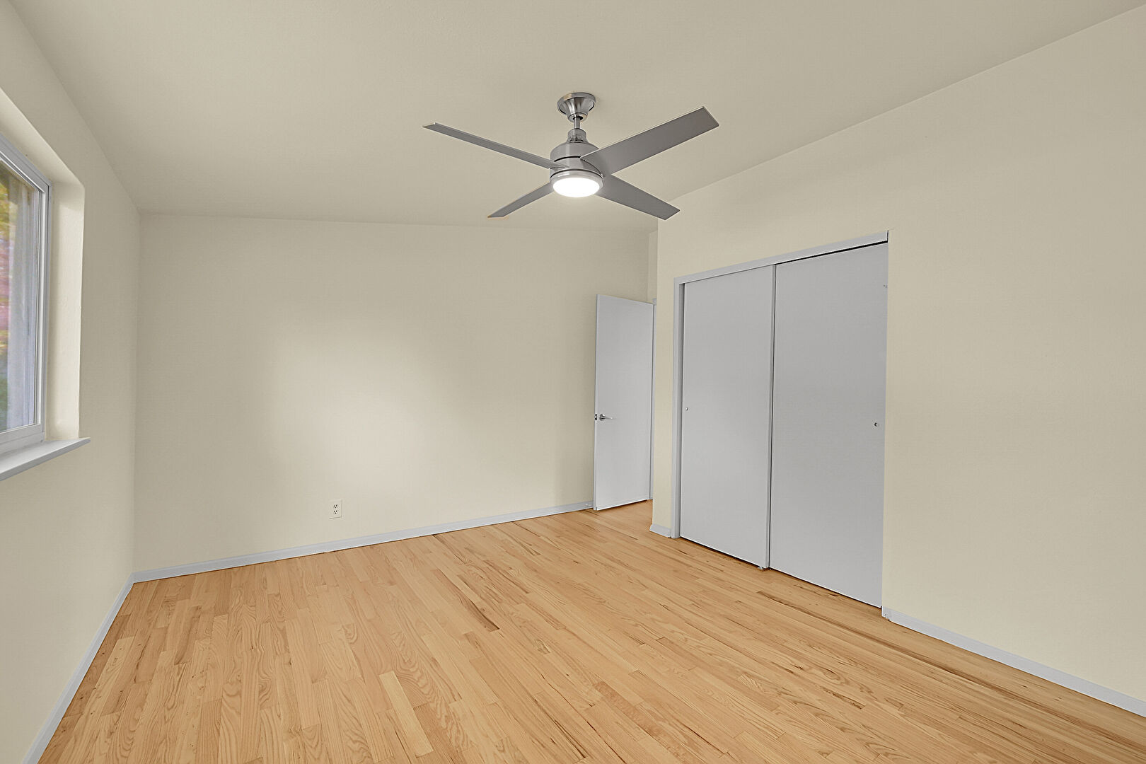 Baseboards Wall, Ceiling Fan, Closet, Drywall, Natural Light, Vent, Wood Finish Floor, Ceiling Fan, Drywall