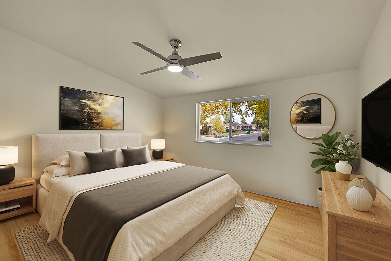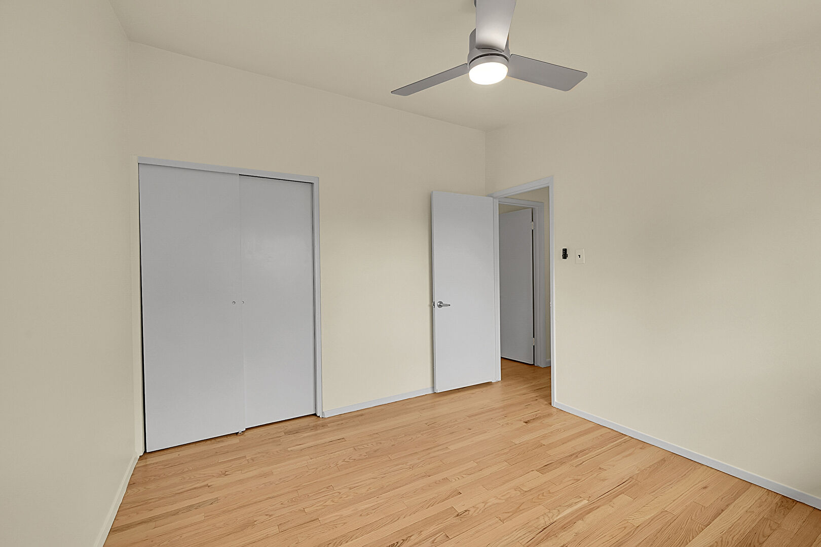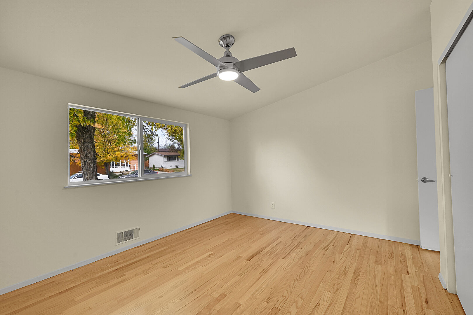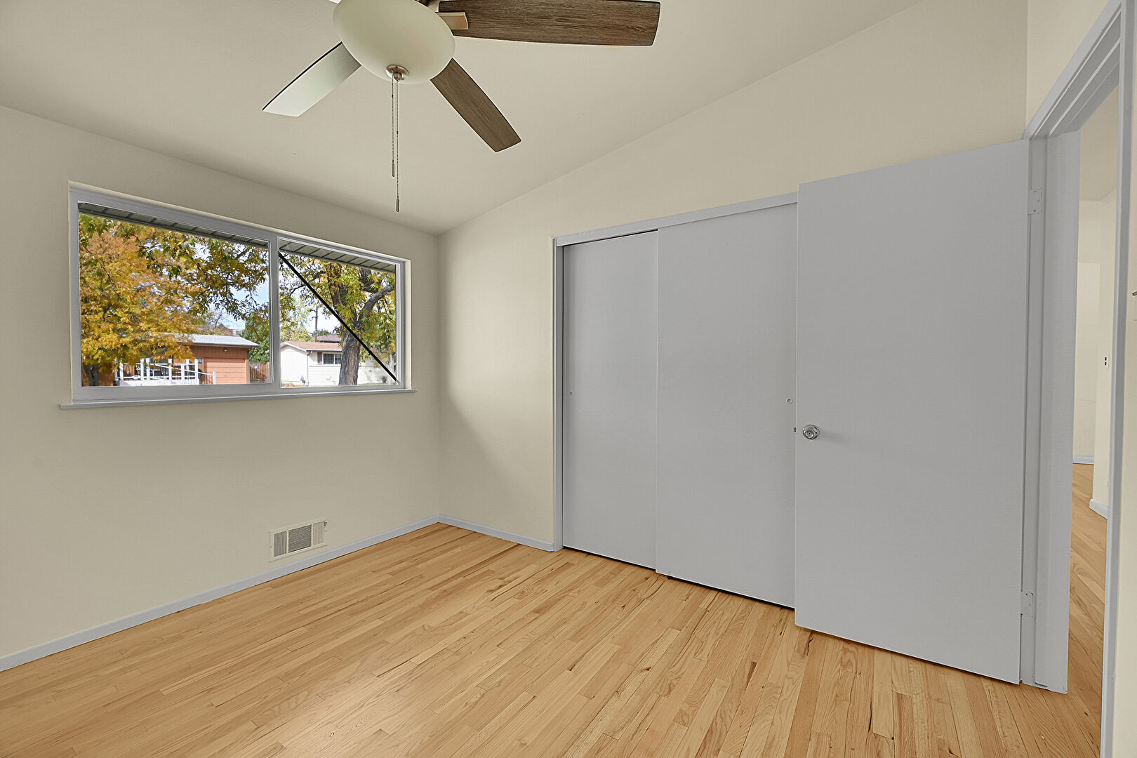 Baseboards Wall, Ceiling Fan, Closet, Drywall, Natural Light, Vent, Wood Finish Floor, Ceiling Fan, Drywall