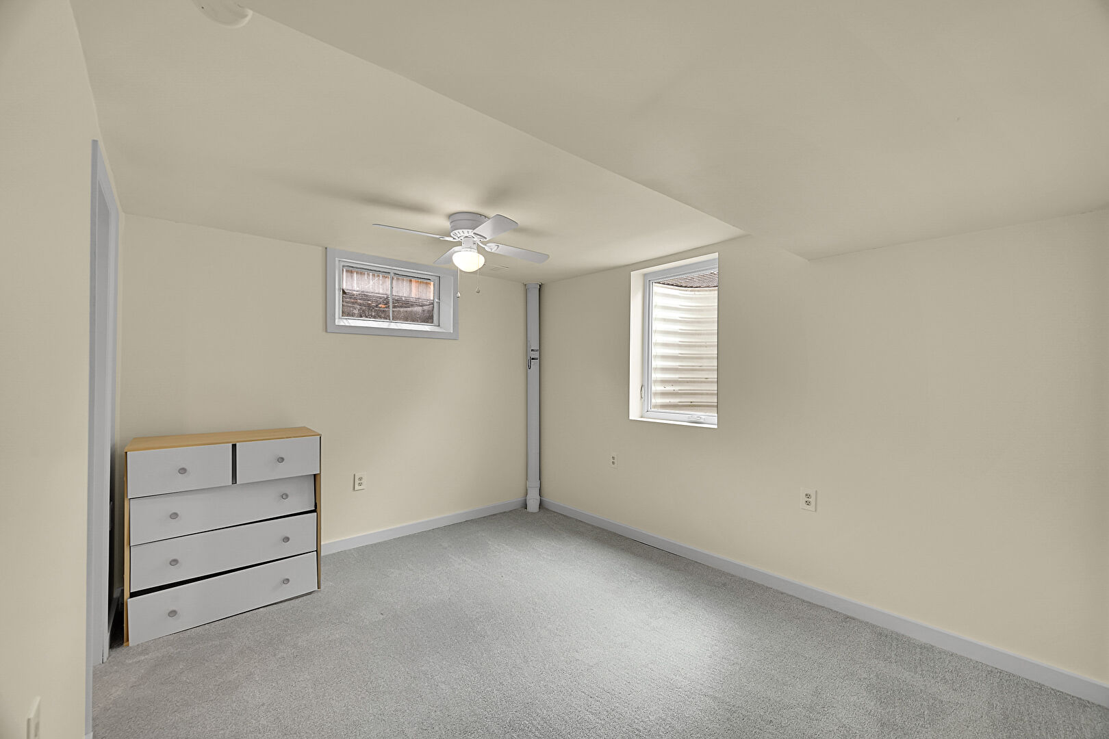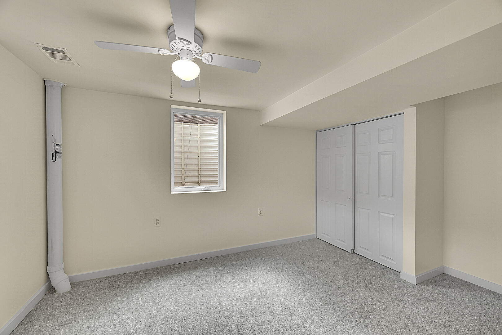 Baseboards Wall, Basement, Carpet, Ceiling Fan, Closet, Drywall, Natural Light, Vaulted Ceiling, Vent, Wood Finish Floor, Baseboards Wall, Ceiling Fan, Closet, Drywall, Natural Light