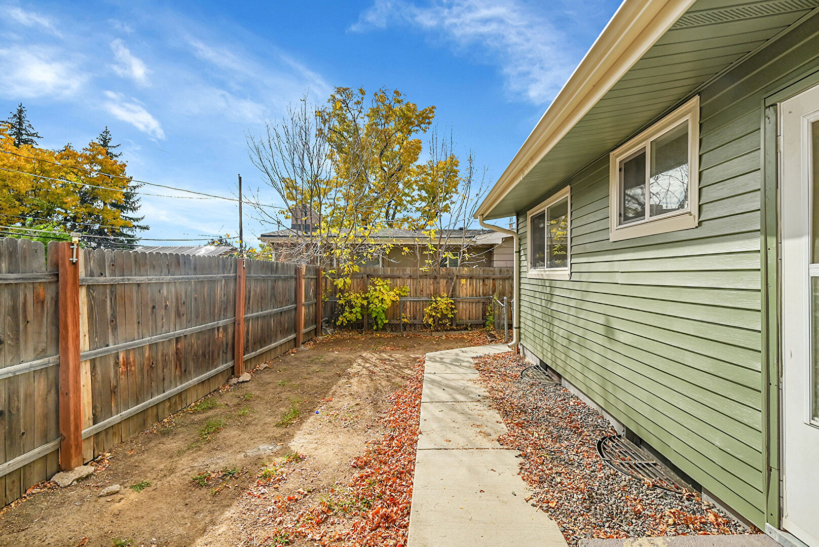 Concrete Foundation, Crawl Space, Downspout, Driveway, Entry Steps, Fence, Gutters, Horizontal Siding, Lawn, Stoop, Water Meter, Concrete Foundation, Downspout, Gutters