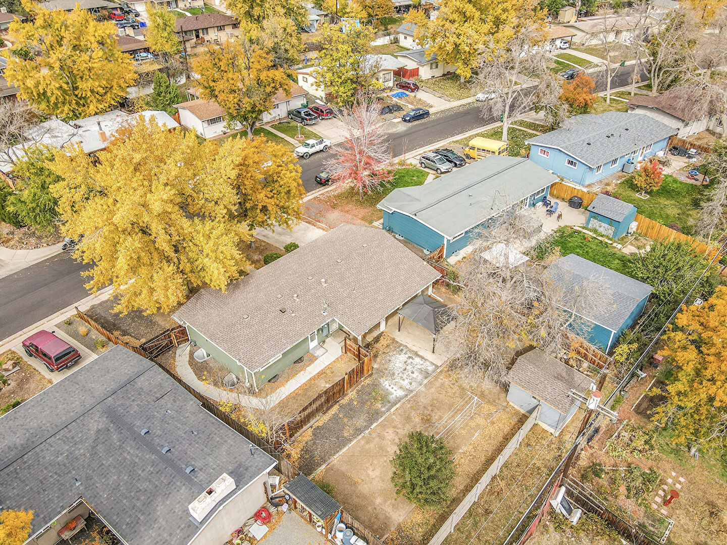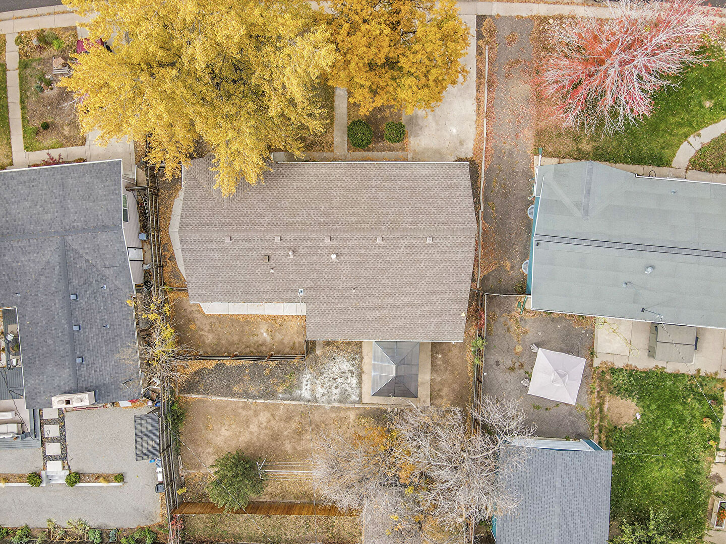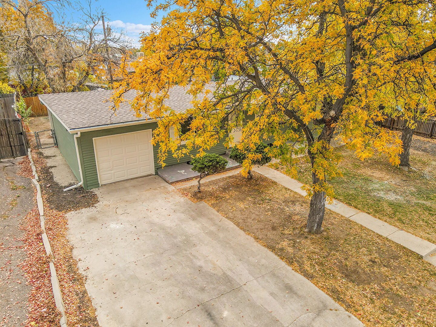 Concrete Foundation, Crawl Space, Downspout, Driveway, Fence, Gutters, Horizontal Siding, Lawn, Stoop, Downspout, Shingle Roof