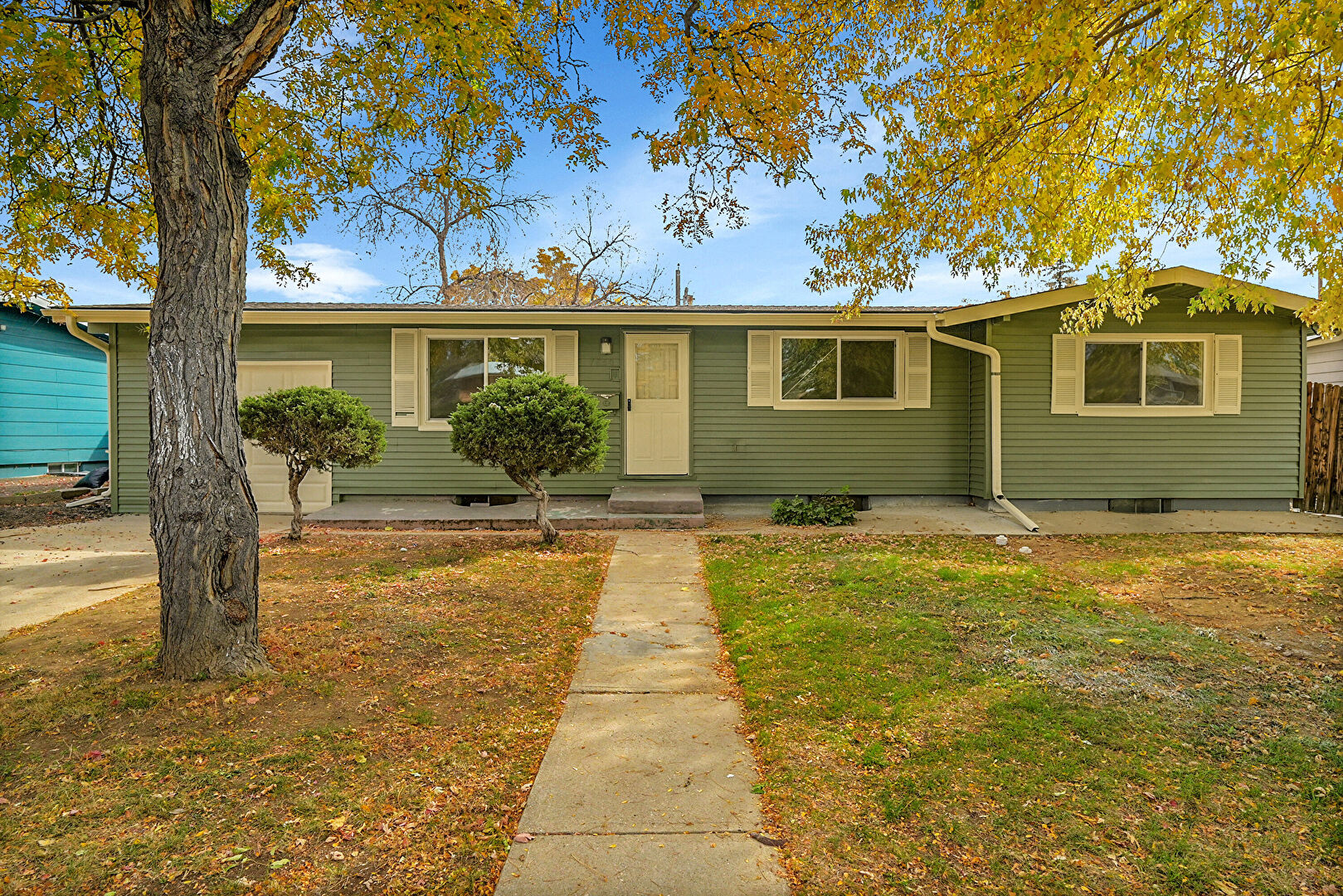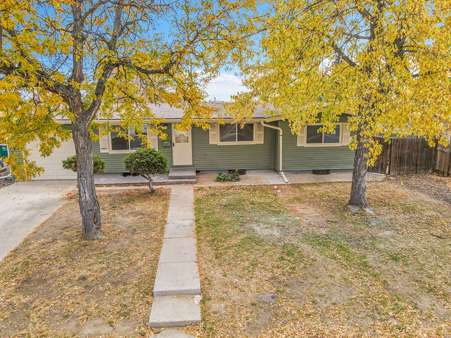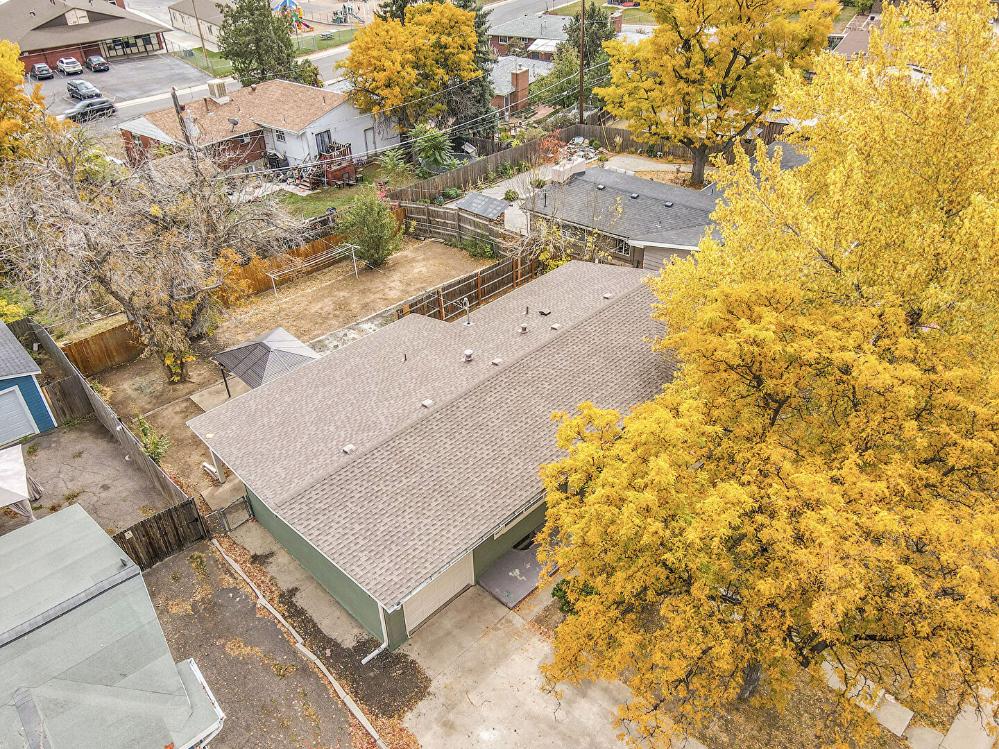 Concrete Foundation, Crawl Space, Downspout, Driveway, Fence, Gutters, Horizontal Siding, Lawn, Stoop, Downspout, Shingle Roof