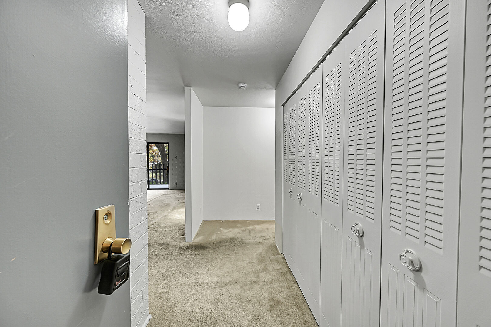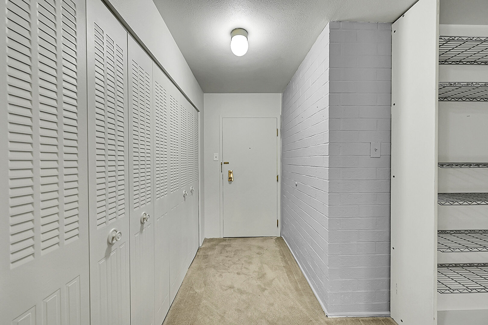 Brick Wall, Carpet, Drywall, Vent, Closet, Natural Light