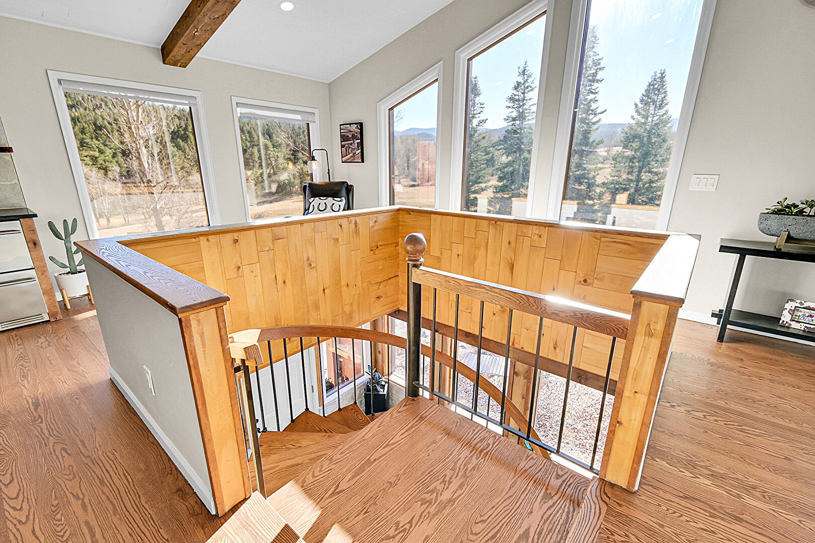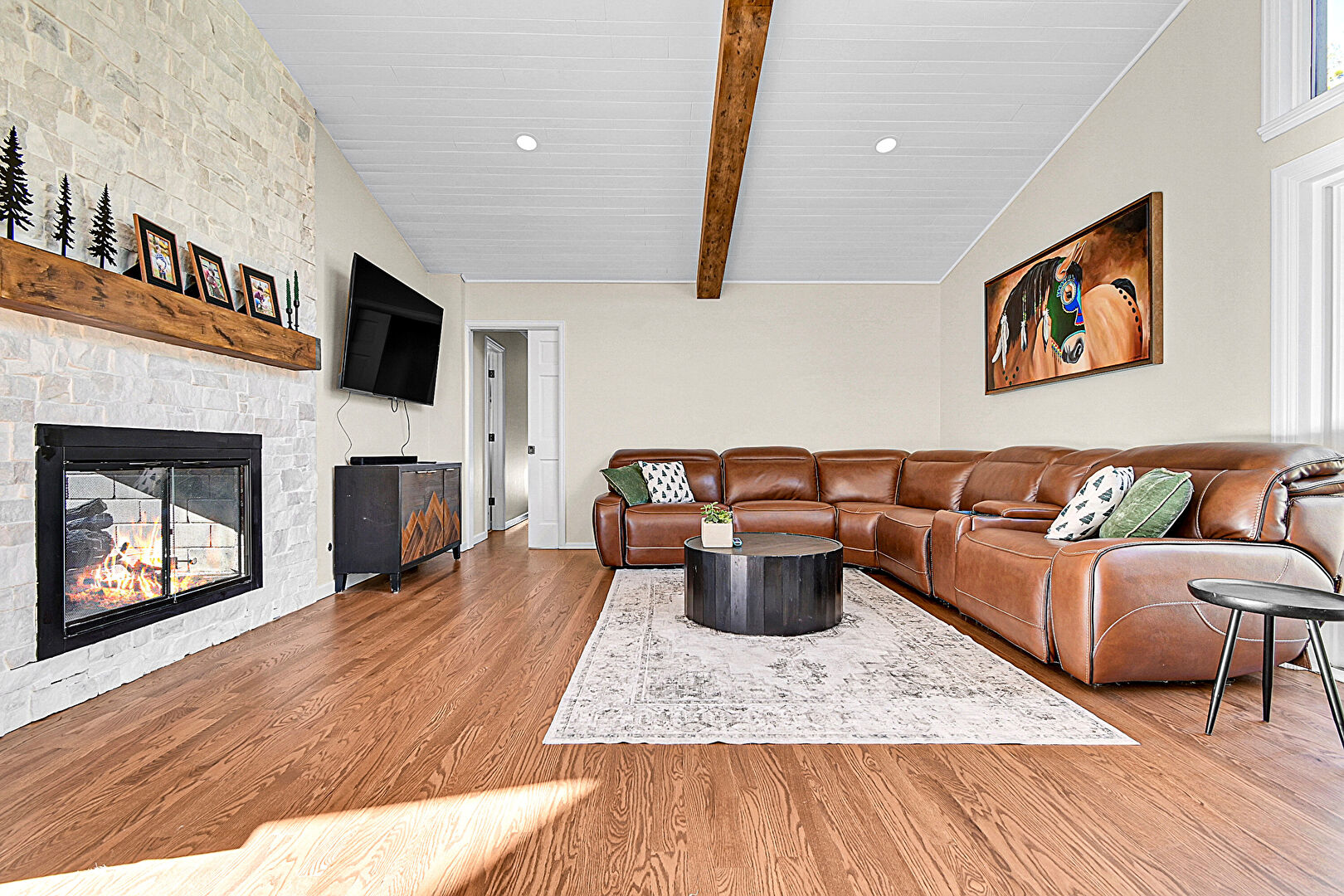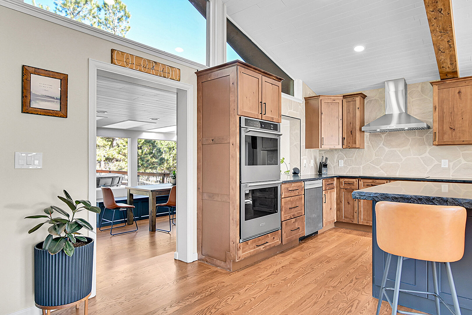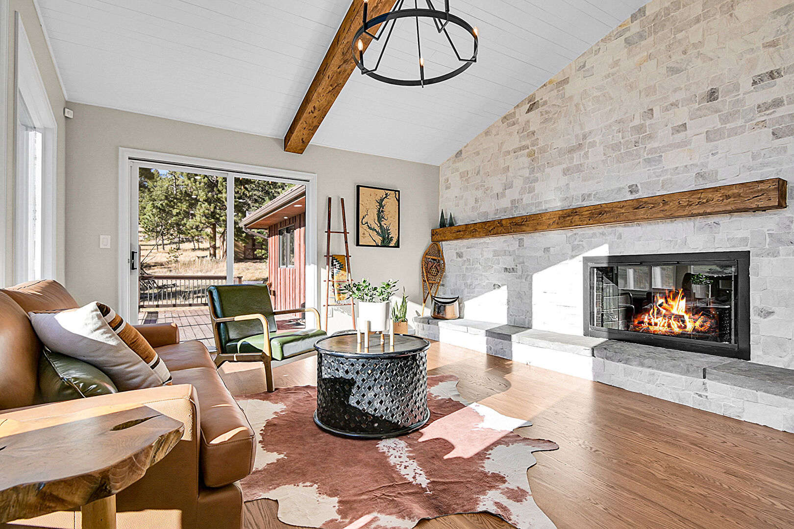 Baseboard Radiator, Baseboards Wall, Beamed Ceiling, Cathedral Ceiling, Drywall, Fireplace, Forest View, High Ceiling, L Shaped Kitchen, Natural Light, Notable Chandelier, Recessed Lighting, Stone Wall, Sunroom, Upstairs Landing, Vaulted Ceiling, Vent, Wood Ceiling, Wood Finish Floor, Baseboards Wall, Beamed Ceiling, Double Oven, Drywall, Recessed Lighting, Vaulted Ceiling, Wood Ceiling, Wood Finish Floor