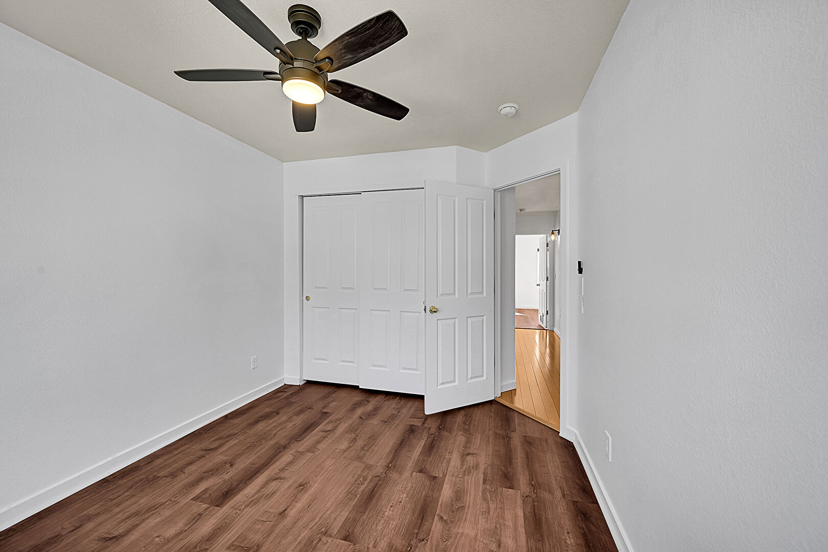 Baseboards Wall, Ceiling Fan, Closet, Drywall, Textured Wall, Vent, Wood Finish Floor, Natural Light, Wood Finish Floor