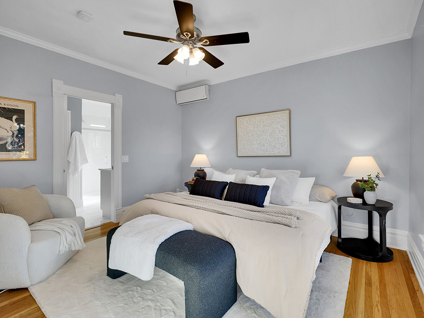 Baseboards Wall, Carpet, Ceiling Fan, Closet, Crown Molding, Drywall, Ensuite Bathroom, Natural Light, Smoke Carbon Monoxide Detector, Wall Mounted Ac, Wood Finish Floor, Drywall, Natural Light, Smoke Carbon Monoxide Detector, Wood Finish Floor