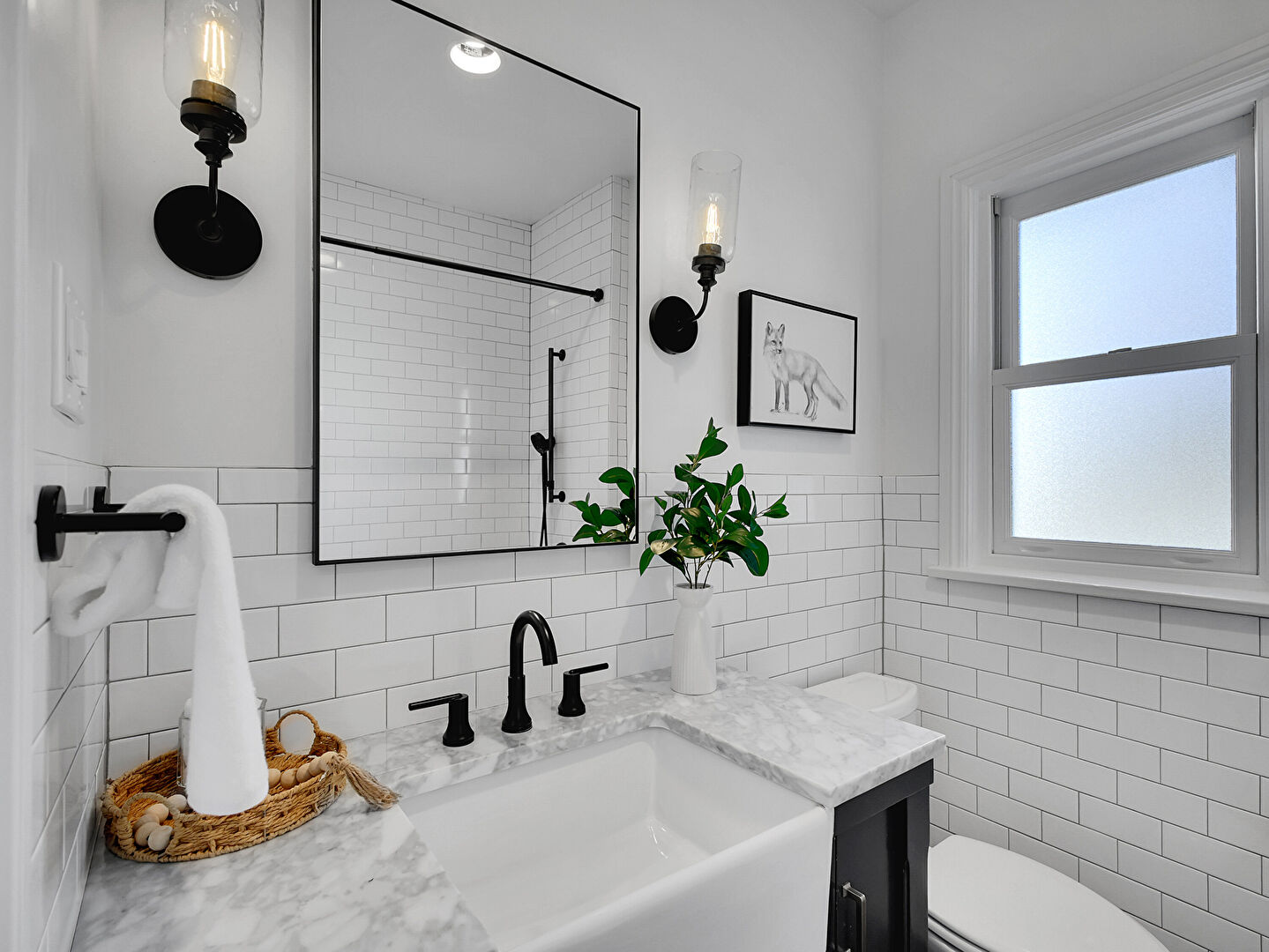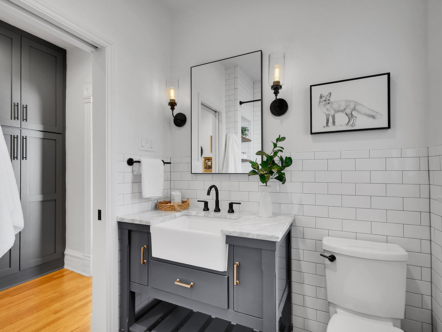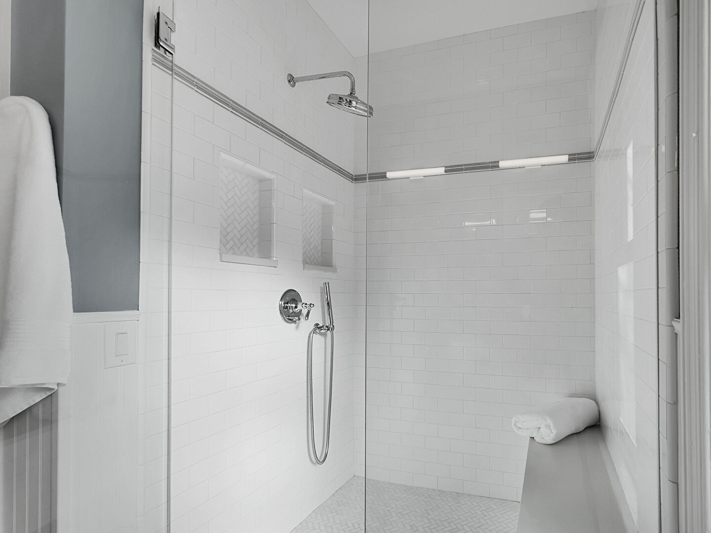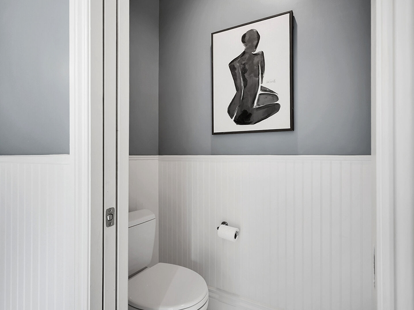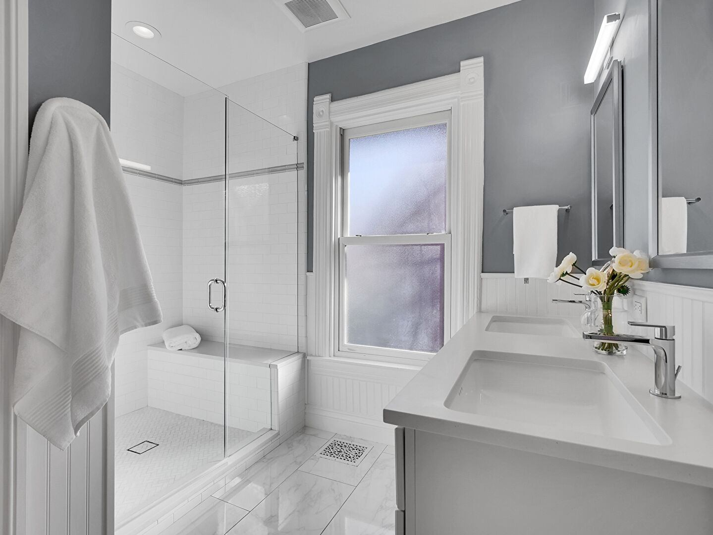 Baseboards Wall, Ceiling Fan, Crown Molding, Double Vanity, Drywall, Ensuite Bathroom, Full Bathroom, Half Bathroom, Marble Finish Floor, Natural Light, Recessed Lighting, Tile Floor, Tile Wall, Vanity, Vent, Wainscot Wall, Wood Finish Floor, Wood Wall, Baseboards Wall, Combined Bath Shower, Full Bathroom, Marble Finish Floor, Recessed Lighting, Wainscot Wall, Water Closet