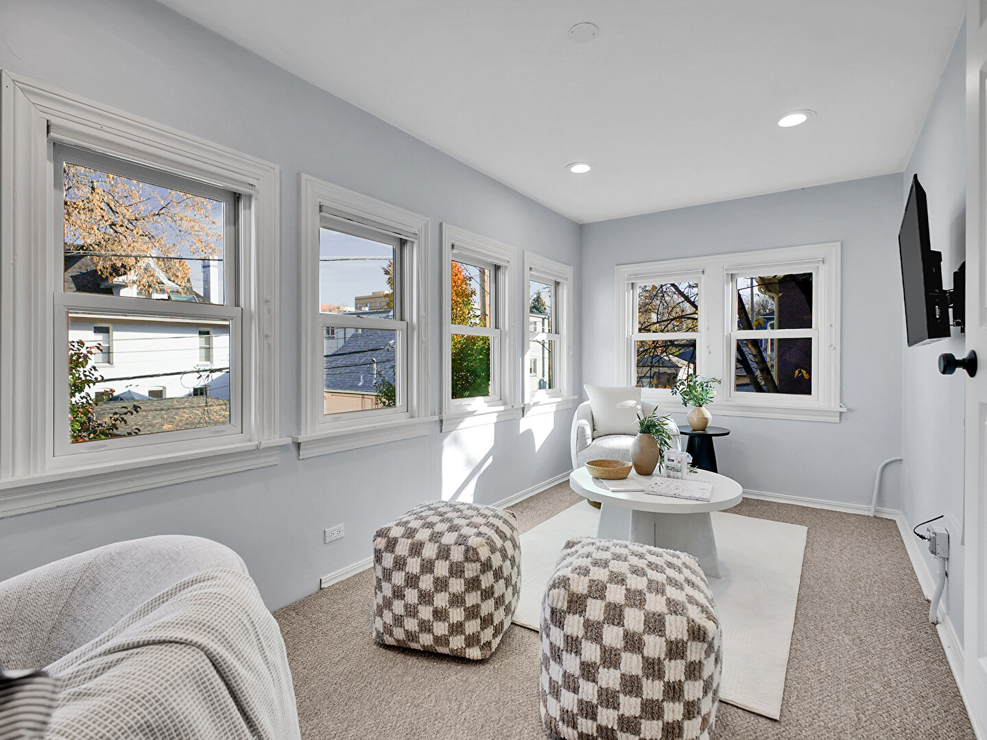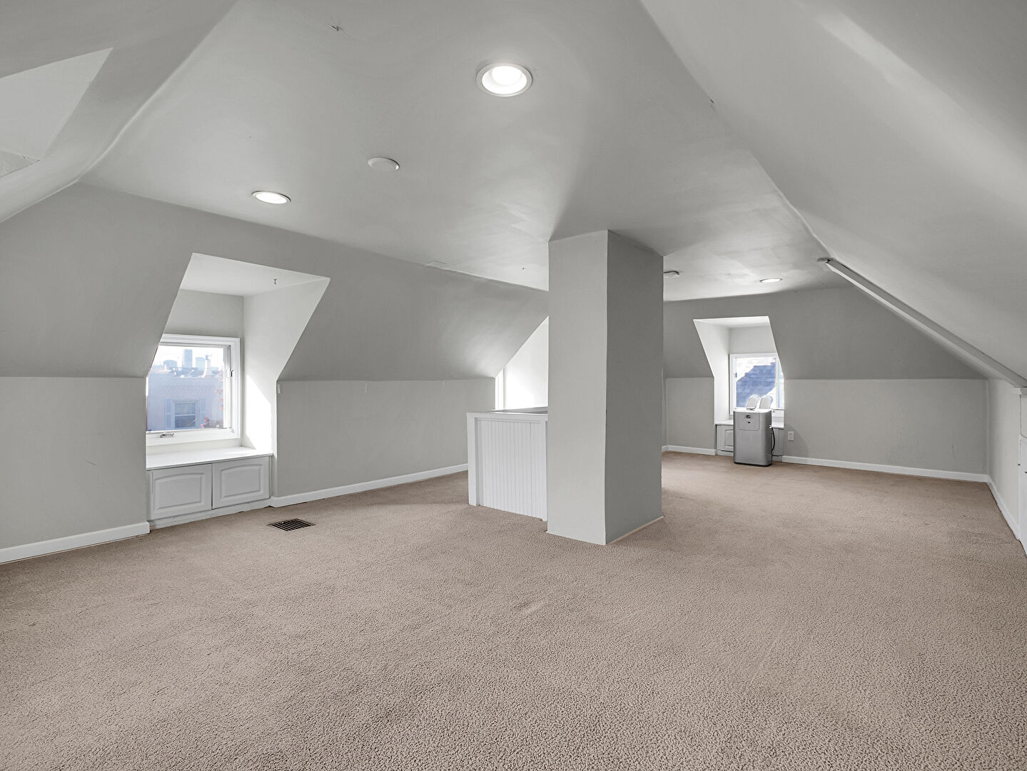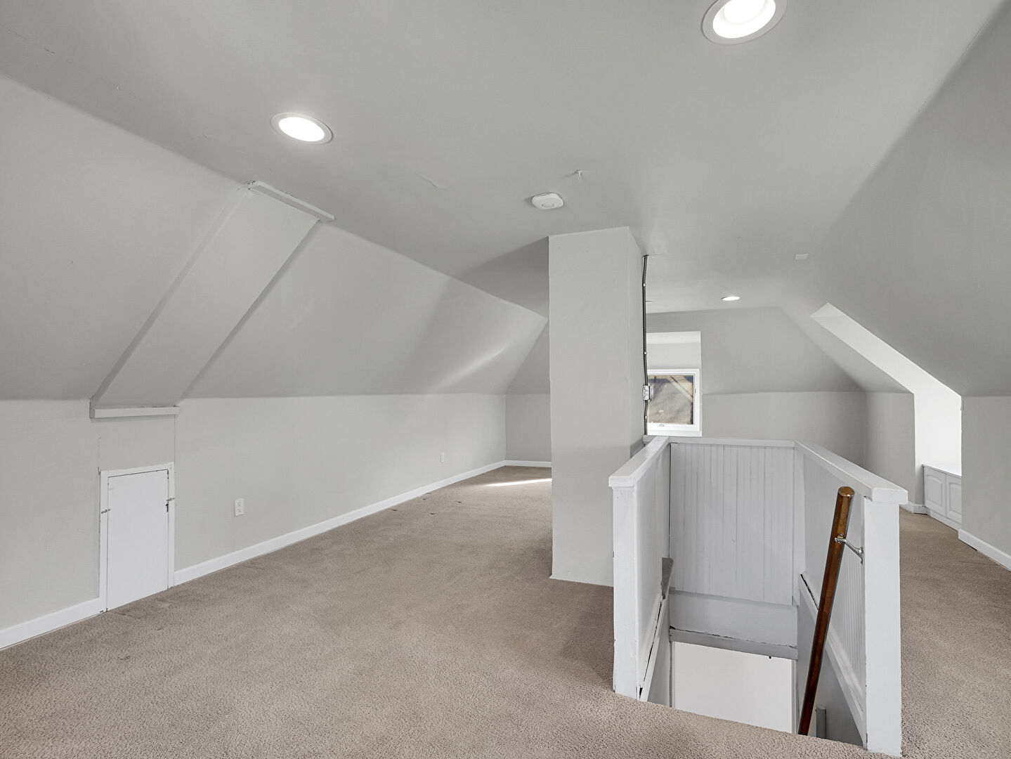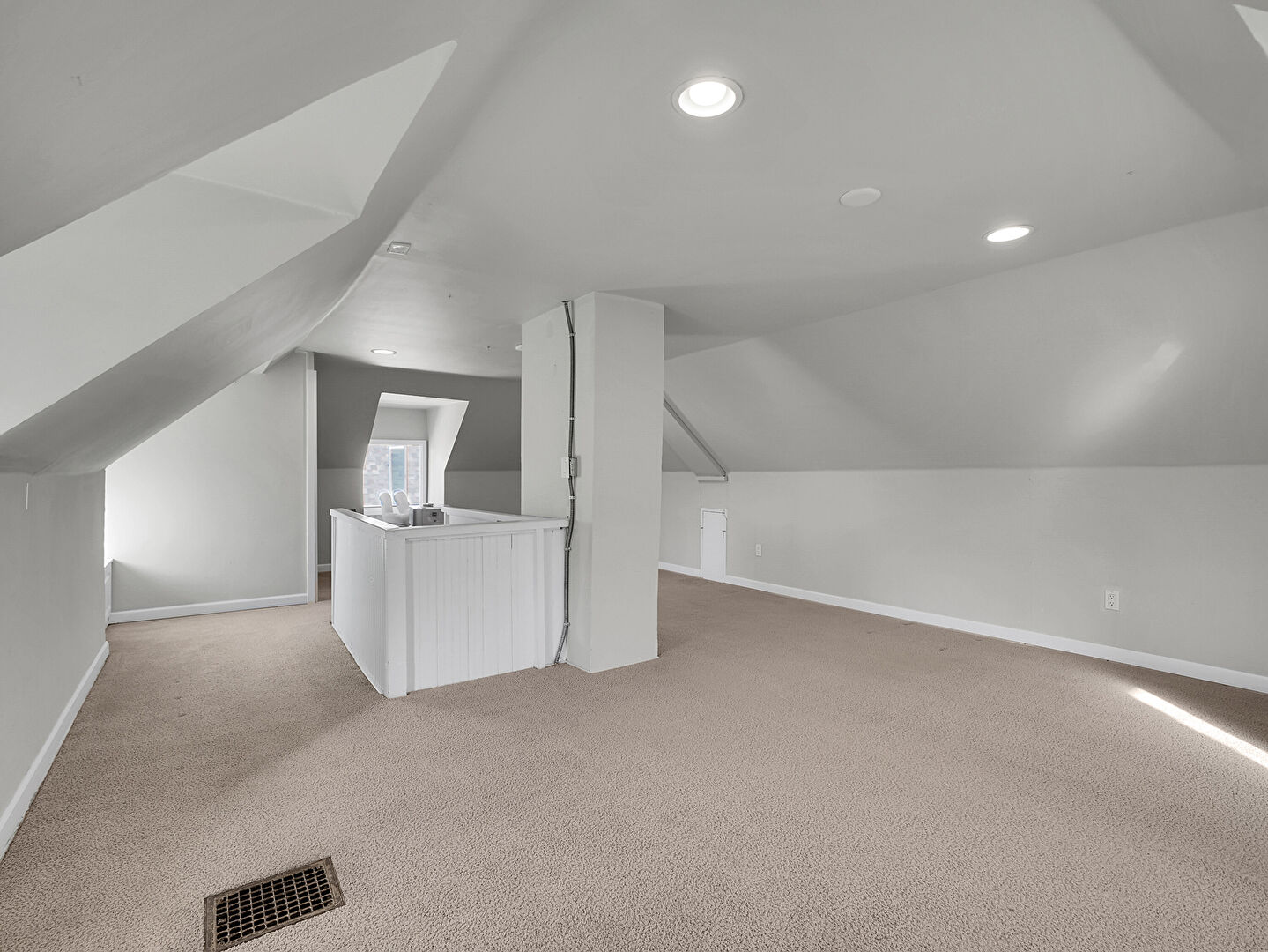 Baseboards Wall, Bonus Room, Carpet, Drywall, Natural Light, Recessed Lighting, Vaulted Ceiling, Vent, Carpet, Drywall, Recessed Lighting, Skylight