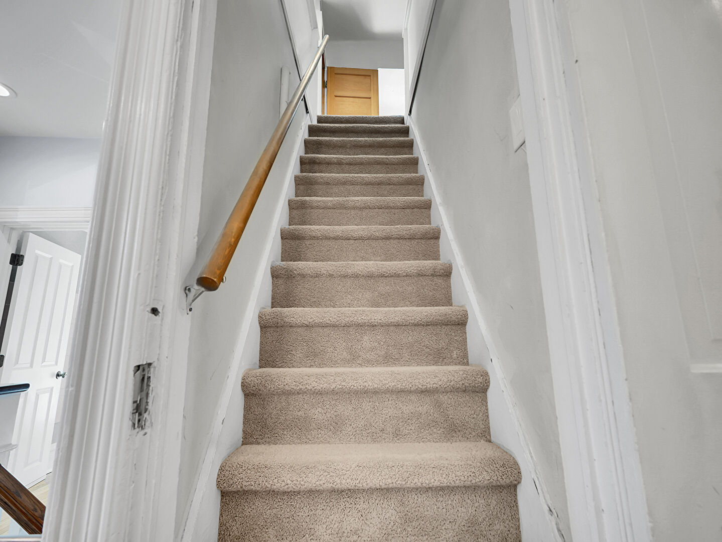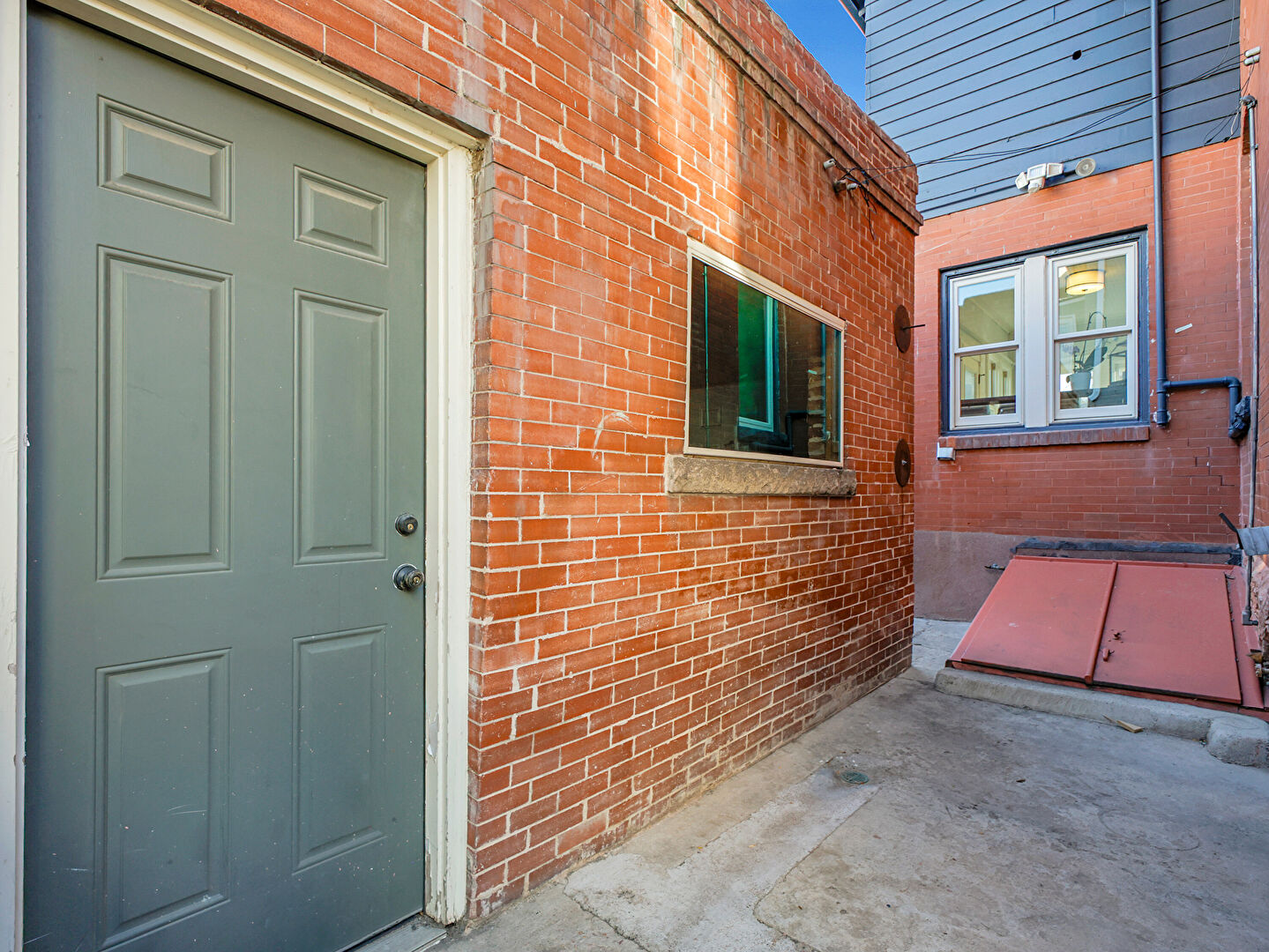 Brick Siding, Bulkhead Entry, Chimney, Concrete Foundation, Dormer Roof, Downspout, Electric Meter, Entry Steps, Fence, Gas Meter, Grill, Gutters, Horizontal Siding, Lawn, Outdoor Dining Area, Patio, Porch, Residential View, Shingle Roof, Stairs, Stoop, Window Mounted Ac, Dormer Roof, Downspout, Electric Meter, Fence, Gate, Lawn, Porch, Shingle Roof