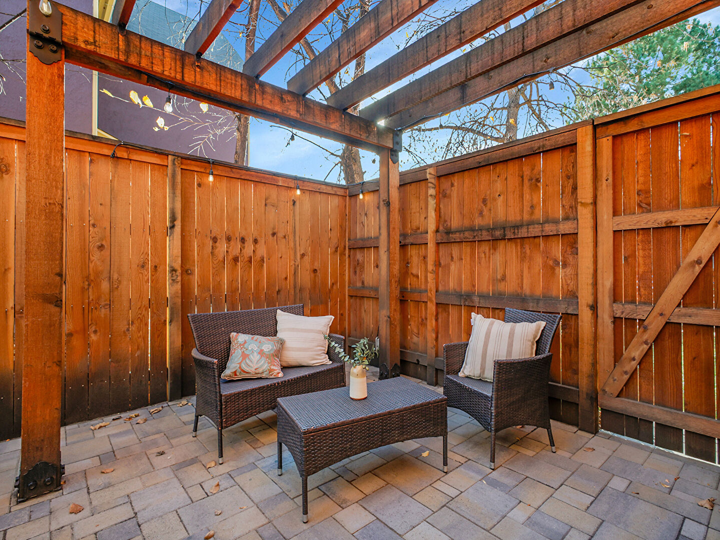 Electric Meter, Fence, Garden, Outdoor Bar, Outdoor Living Space, Patio, Pergola, Stoop, Fence, Outdoor Bar, Outdoor Dining Area, Patio, Pergola, Porch
