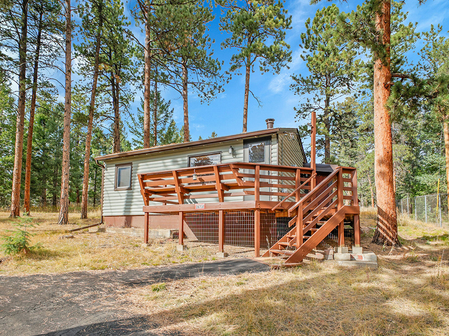 Downspout, Foundation Piers, Gutters, Horizontal Siding, Skirt, Stairs, Vertical Siding, Woods View, Deck