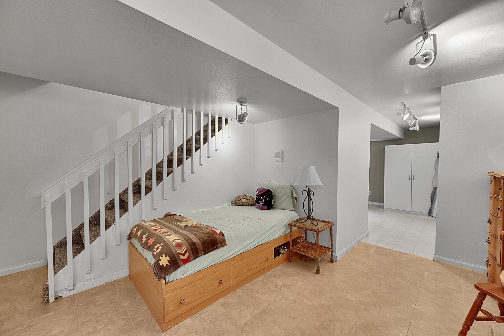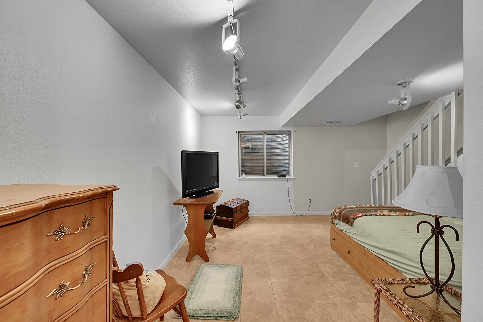 Baseboards Wall, Basement, Drywall, Textured Ceiling, Tile Floor, Track Lighting, Baseboards Wall, Basement, Drywall