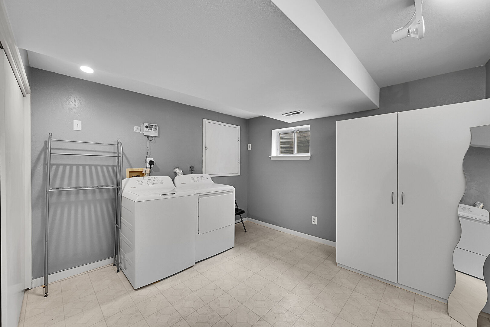 Baseboards Wall, Basement, Drywall, Laundry, Natural Light, Recessed Lighting, Vent, Vinyl Floor, Vinyl Floor, Washer Hookup