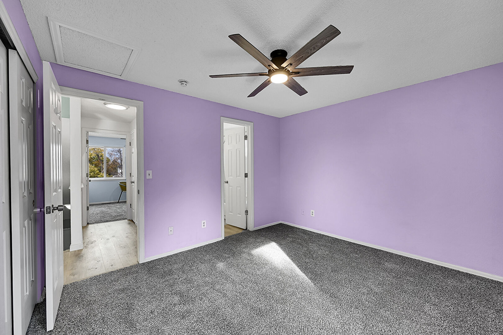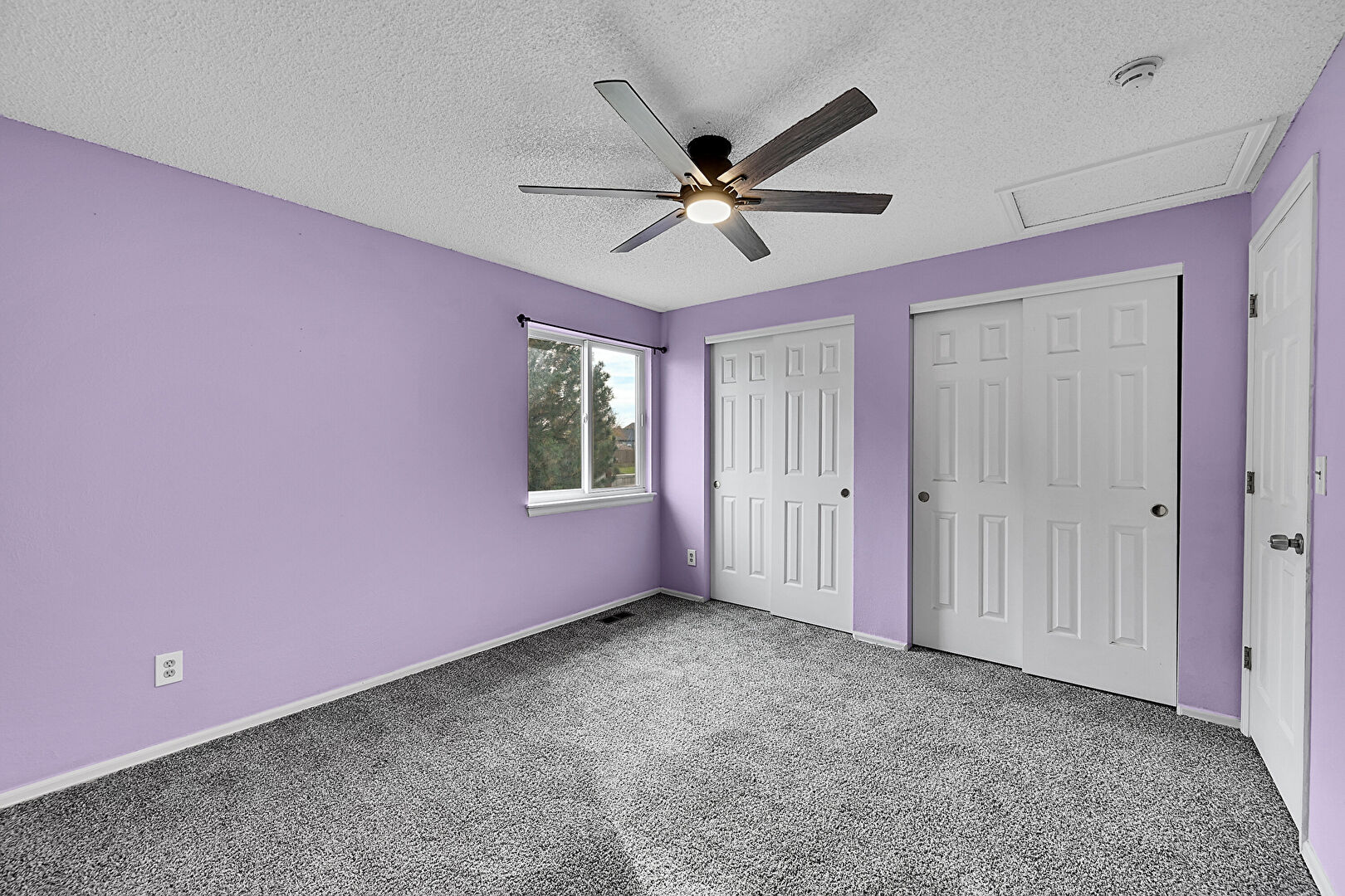 Baseboards Wall, Carpet, Ceiling Fan, Drywall, Natural Light, Scuttle, Smoke Carbon Monoxide Detector, Textured Ceiling, Two Closets, Vent, Drywall, Ensuite Bathroom, Natural Light, Textured Ceiling