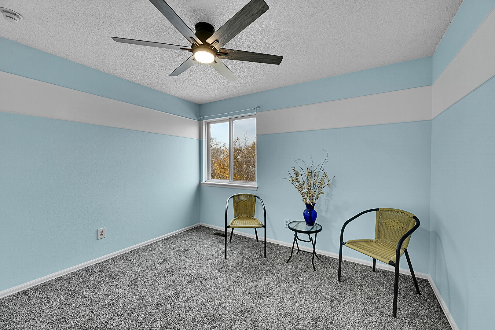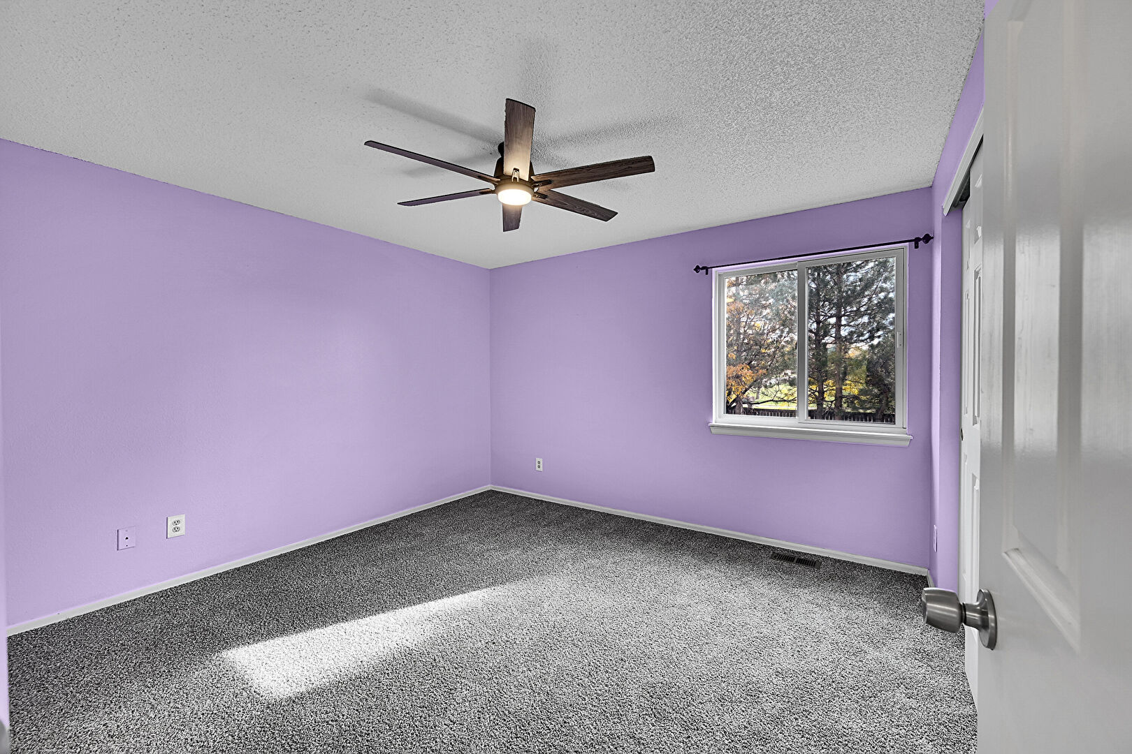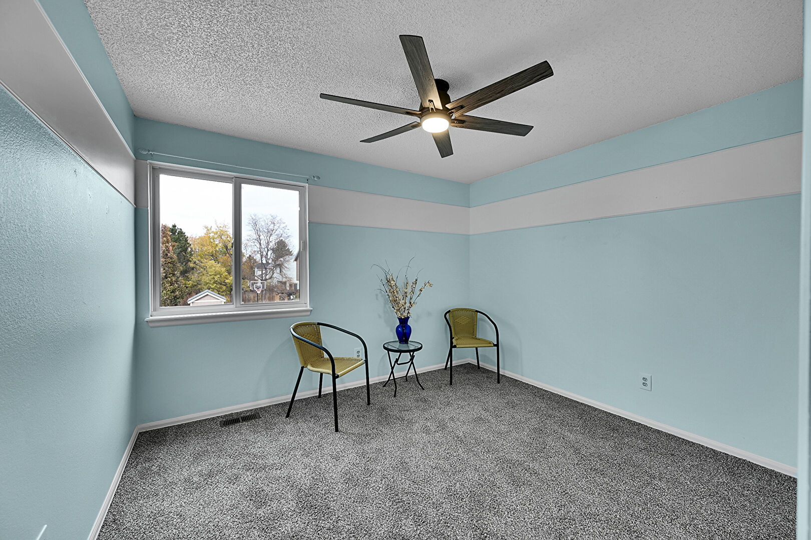 Baseboards Wall, Carpet, Ceiling Fan, Drywall, Natural Light, Textured Ceiling, Vent, Drywall, Smoke Carbon Monoxide Detector
