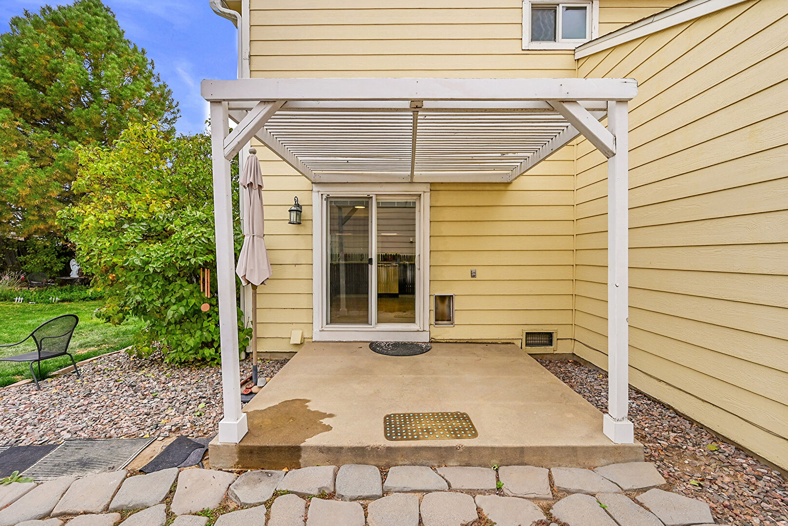 Brick Siding, Crawl Space, Downspout, Gutters, Lawn, Patio, Pergola, Porch, Horizontal Siding