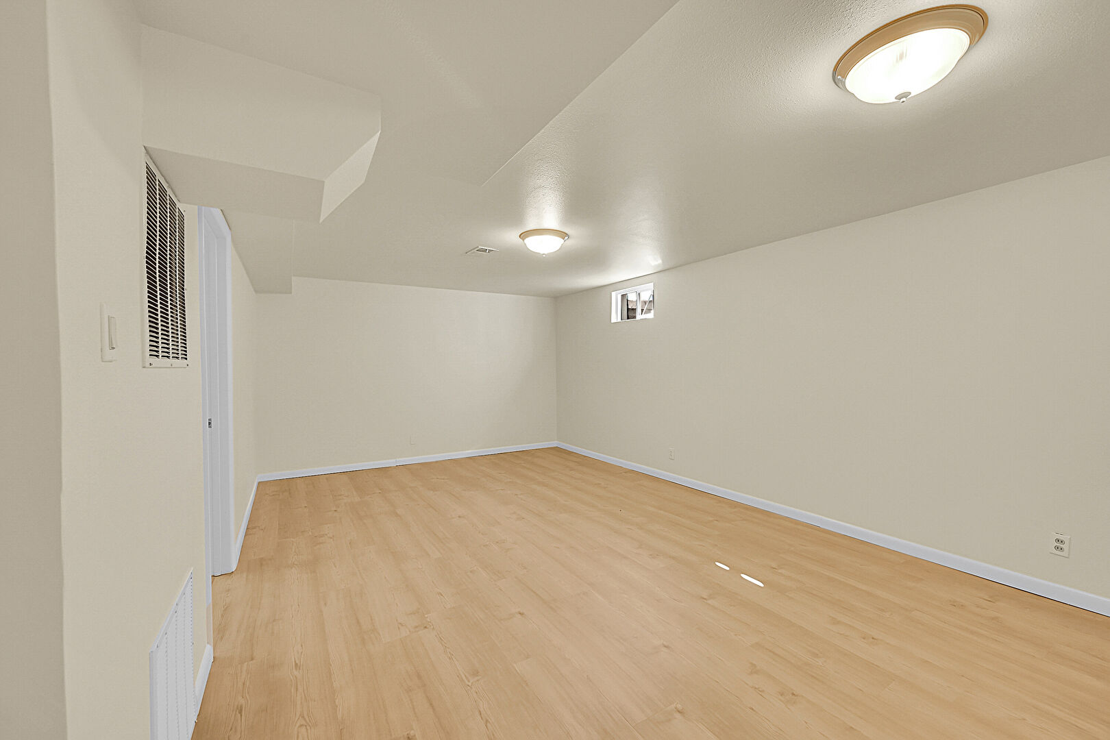 Baseboards Wall, Basement, Drywall, Natural Light, Vent, Wall Furnace, Wood Finish Floor, Baseboards Wall, Drywall