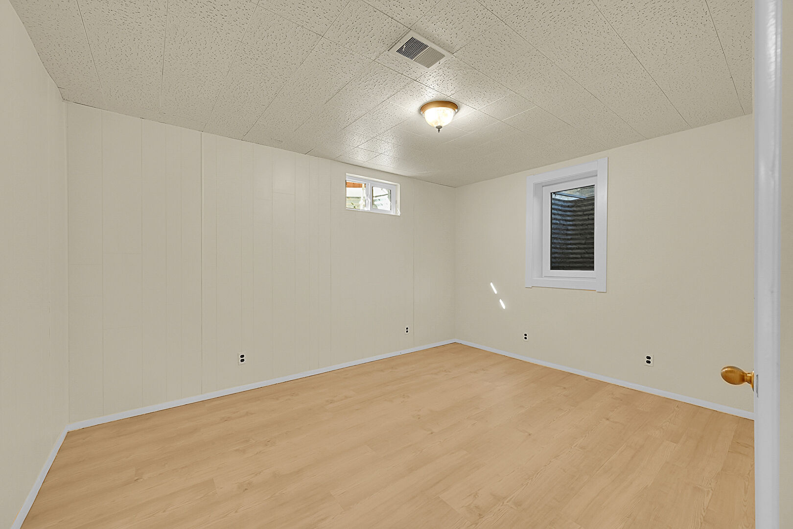 Baseboards Wall, Drywall, Natural Light, Vent, Wood Finish Floor, Wood Wall, Baseboards Wall, Basement
