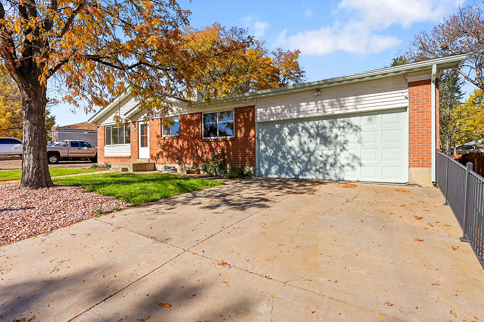 Brick Siding, Central Ac, Chimney, Concrete Foundation, Downspout, Driveway, Entry Steps, Fence, Gate, Horizontal Siding, Lawn, Satellite Dish, Stoop, Driveway, Gutters