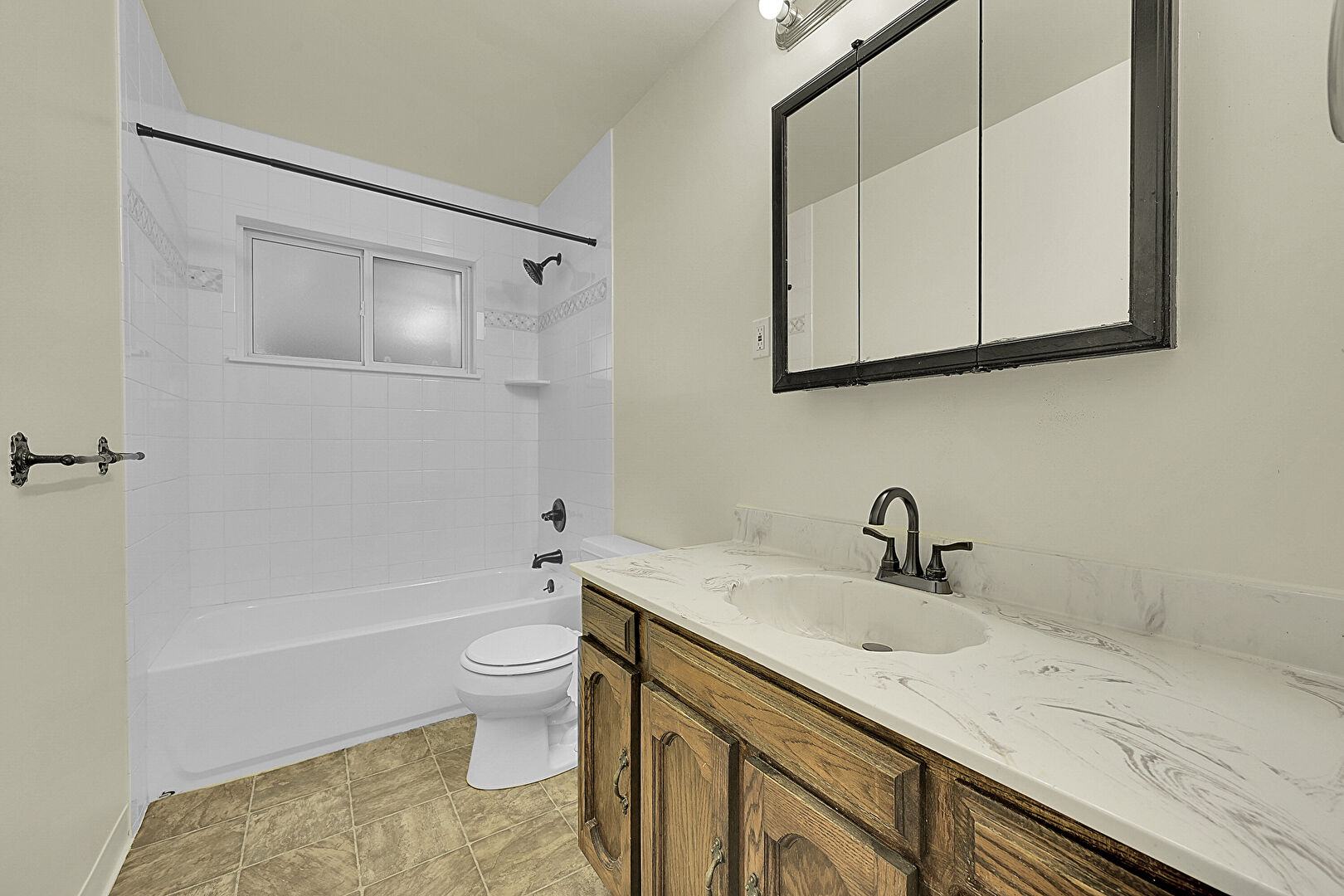 Baseboards Wall, Combined Bath Shower, Full Bathroom, Vanity, Drywall