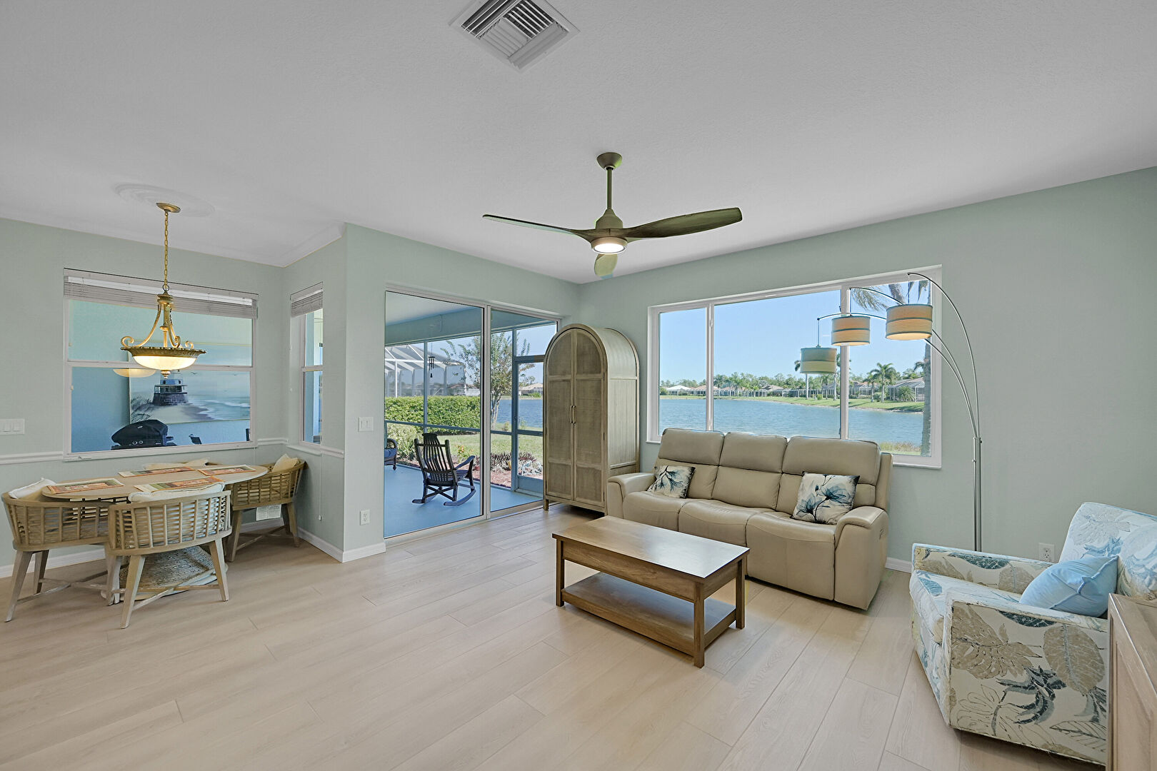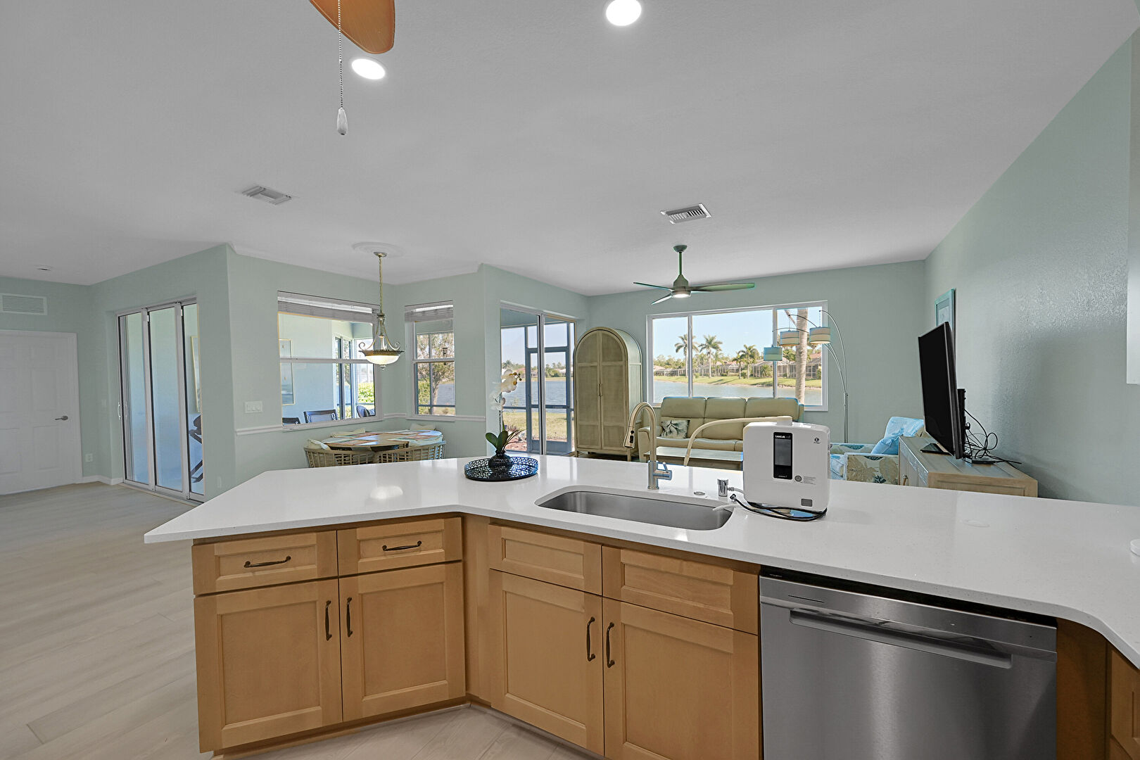 Baseboards Wall,  Ceiling Fan,  Crown Molding,  Drywall,  Natural Light,  Recessed Lighting,  Sunroom,  U Shaped Kitchen,  Vent,  Water View,  Waterfront,  Wood Finish Floor, Baseboards Wall, Ceiling Fan, Drywall