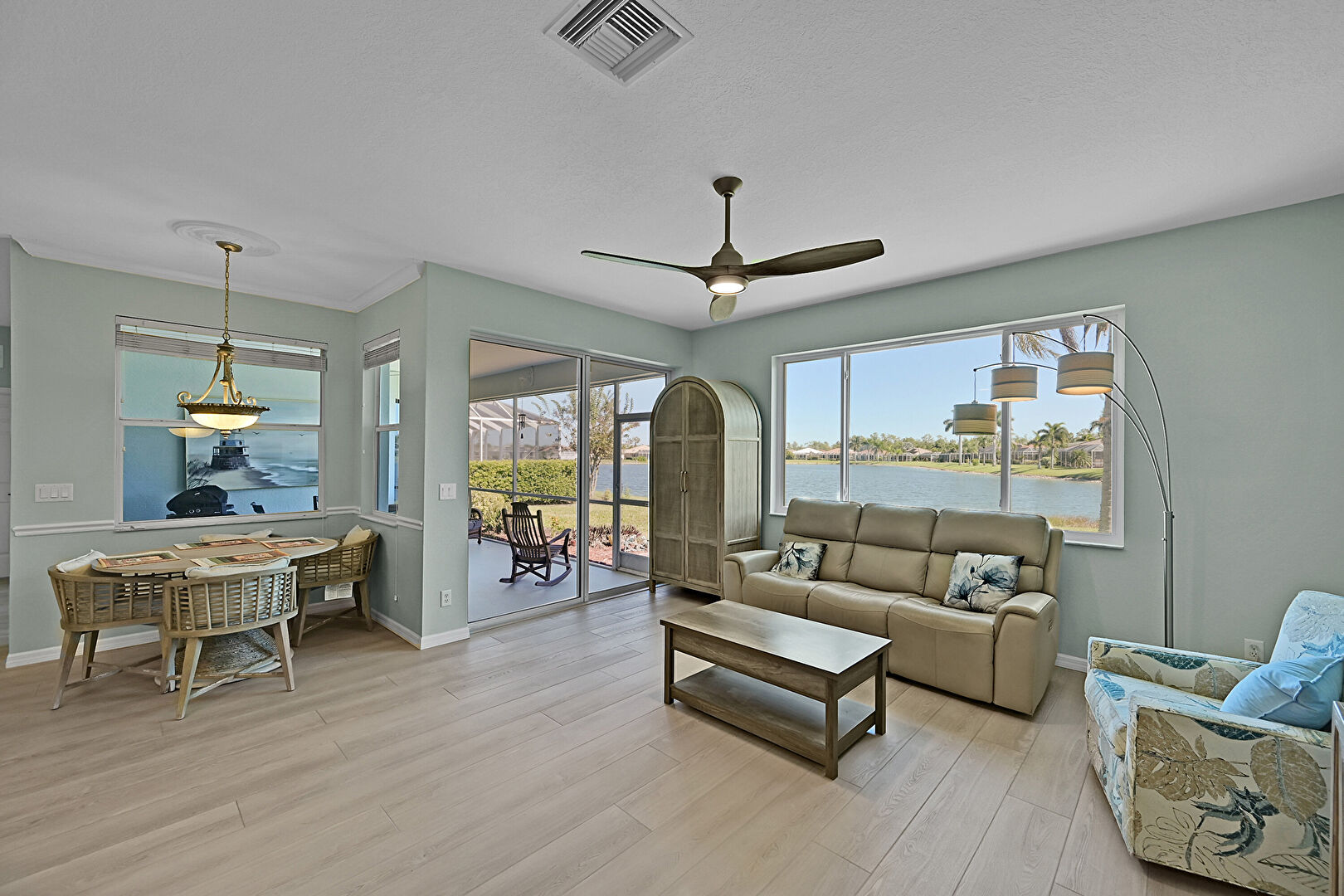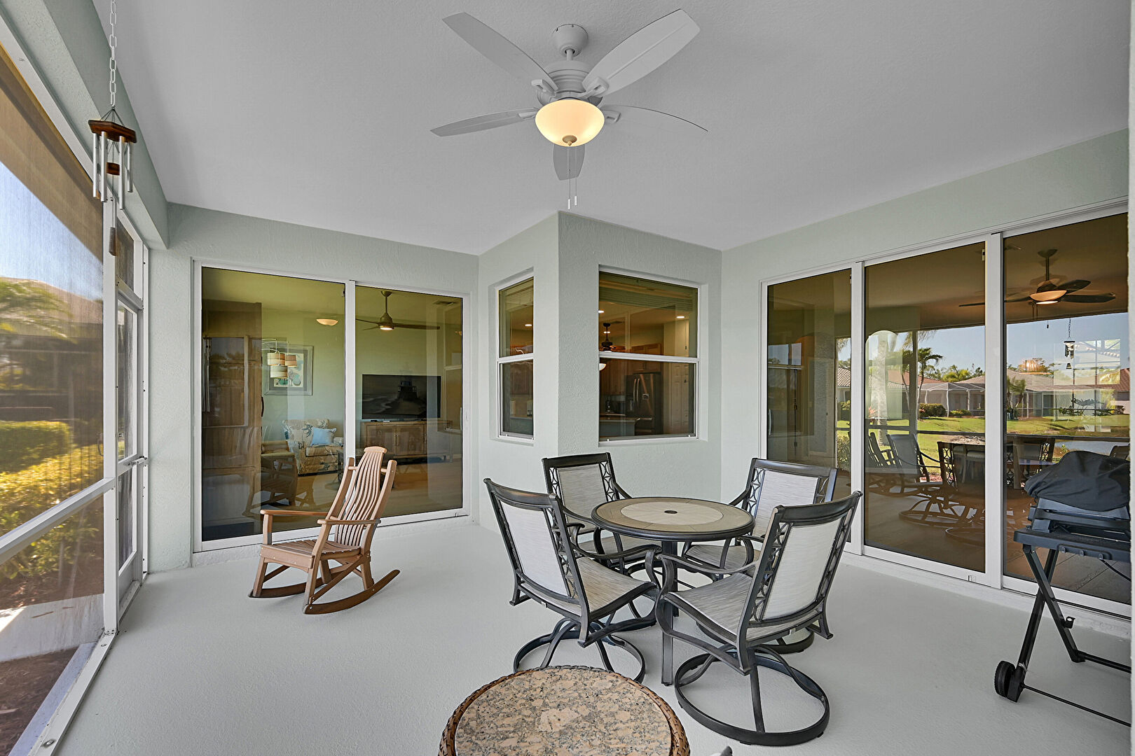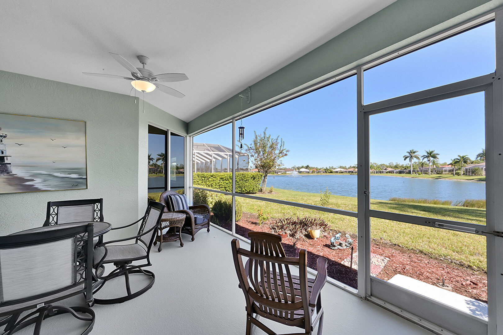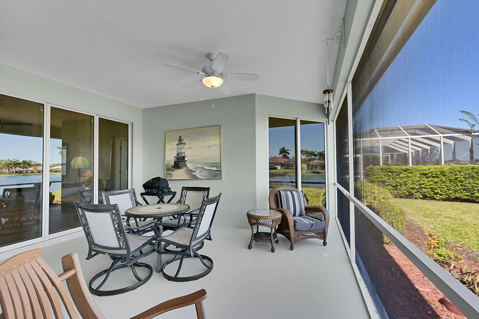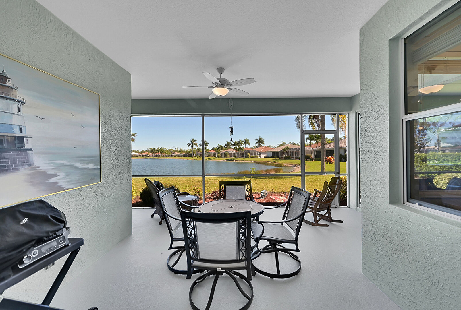 Ceiling Fan,  Concrete Floor,  Grill,  Lanai,  Natural Light,  Outdoor Dining Area,  Pondfront,  Residential View,  Sunroom,  Textured Wall,  Water View,  Waterfront, Ceiling Fan, Natural Light, Water View