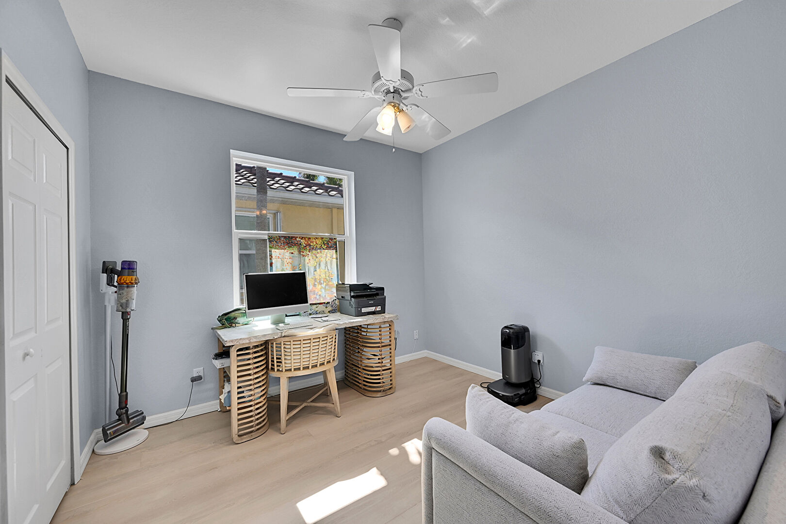 Baseboards Wall,  Ceiling Fan,  Natural Light,  Office Area,  Wood Finish Floor, Drywall