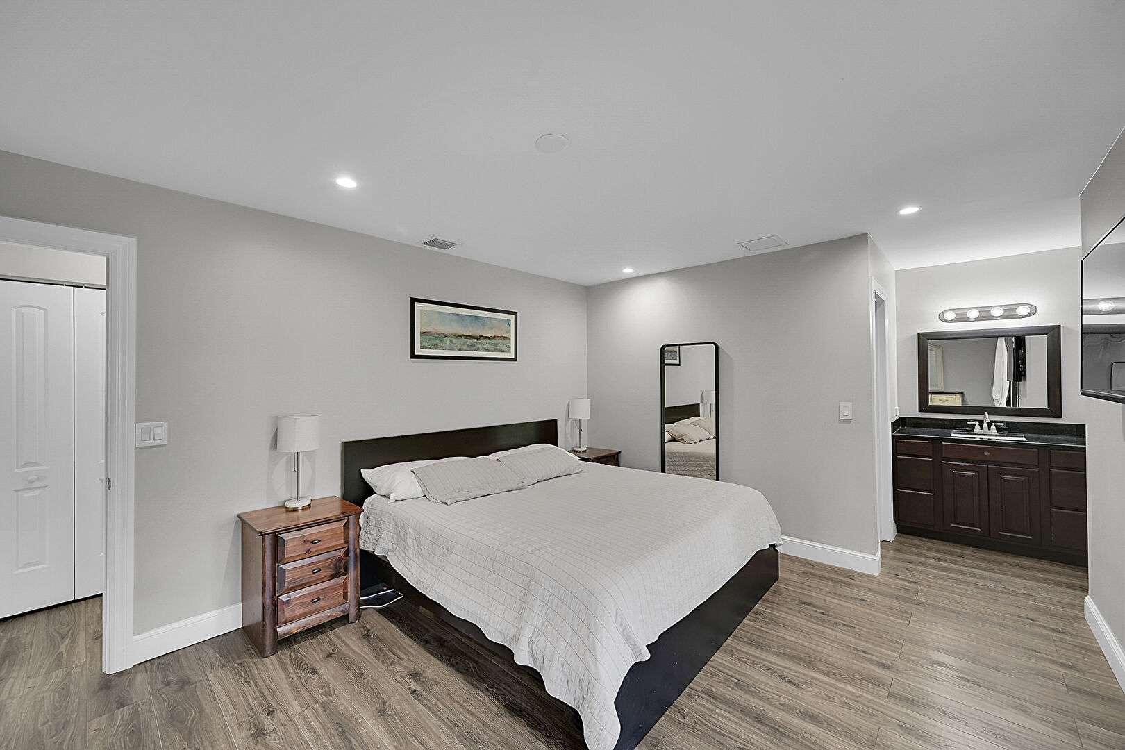 Access To Exterior, Baseboards Wall, Drywall, Ensuite Bathroom, Natural Light, Recessed Lighting, Vent, Wood Finish Floor, Baseboards Wall, Drywall, Recessed Lighting