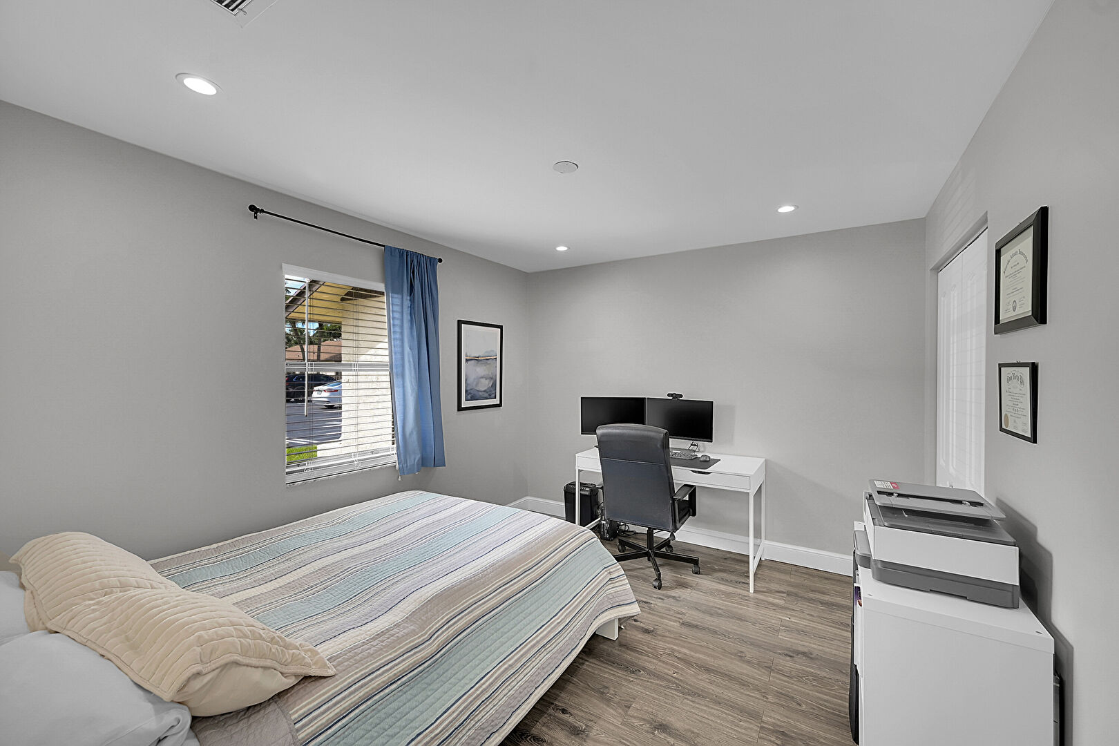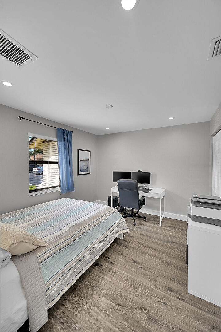 Baseboards Wall, Drywall, Natural Light, Office Area, Recessed Lighting, Vent, Wood Finish Floor, Natural Light, Recessed Lighting, Vent