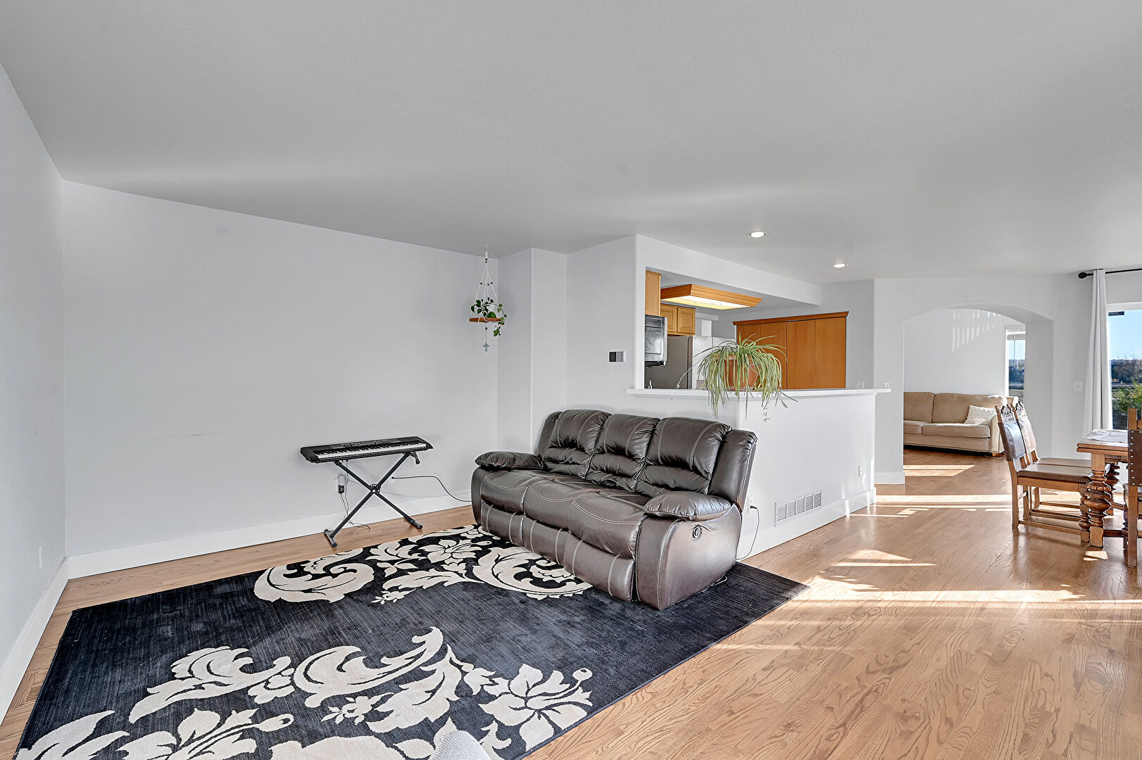 Arched Walkways, Baseboards Wall, Beamed Ceiling, Drywall, High Ceiling, Natural Light, Recessed Lighting, Stairs, Vaulted Ceiling, Vent, Wood Finish Floor, Arched Walkways, Drywall, Natural Light, Textured Ceiling, Vaulted Ceiling, Vent