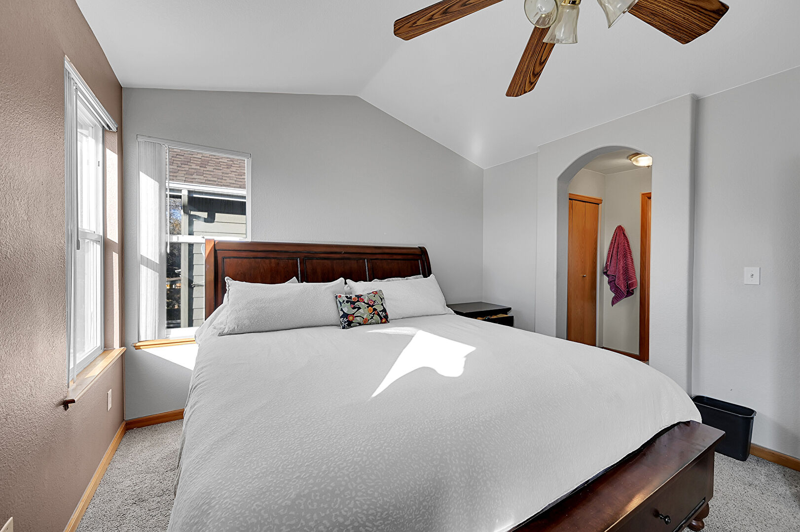 Arched Walkways, Baseboards Wall, Carpet, Cathedral Ceiling, Ceiling Fan, Closet, Drywall, Natural Light, Scuttle, Smoke Carbon Monoxide Detector, Textured Ceiling, Vaulted Ceiling, Vent, Baseboards Wall, Drywall, Natural Light, Textured Wall