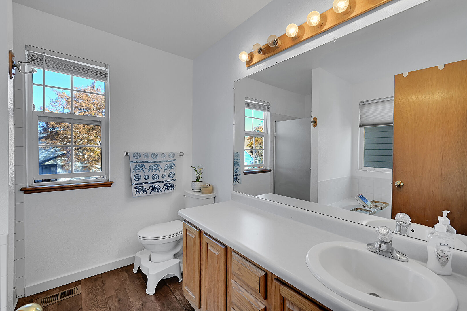 Baseboards Wall, Carpet, Drywall, Ensuite Bathroom, Full Bathroom, Half Bathroom, Natural Light, Recessed Lighting, Textured Wall, Vanity, Vent, Wood Finish Floor, Baseboards Wall, Full Bathroom, Natural Light, Vanity, Wood Finish Floor