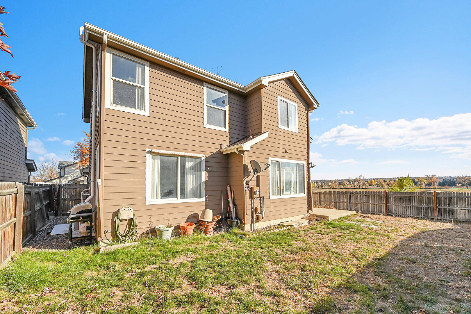 Concrete Foundation, Downspout, Fence, Gutters, Horizontal Siding, Lawn, Satellite Dish, Grill