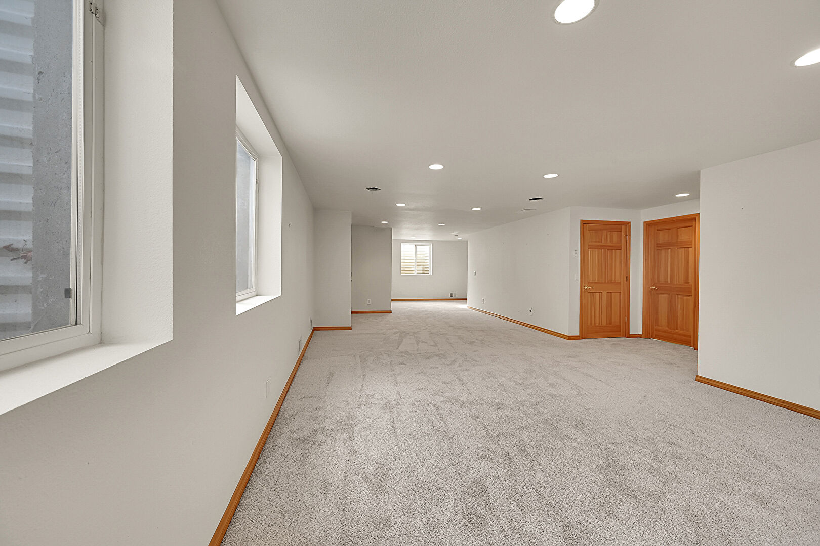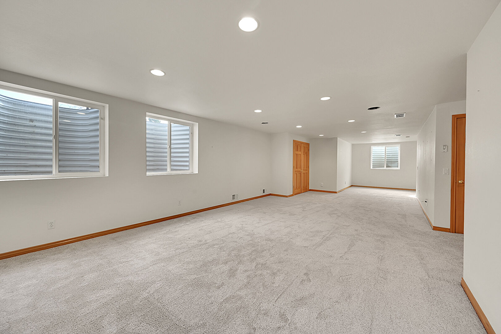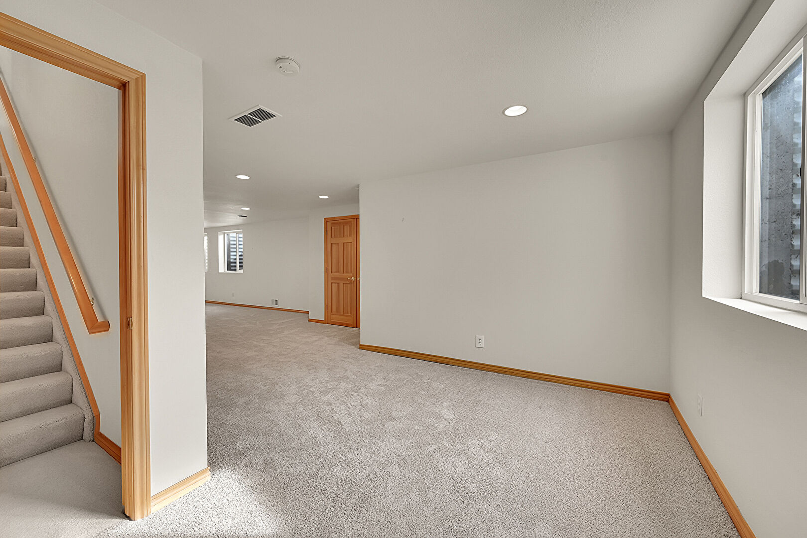 Baseboards Wall, Basement, Carpet, Drywall, Natural Light, Recessed Lighting, Smoke Carbon Monoxide Detector, Stairs, Vent, Carpet, Drywall, Natural Light, Recessed Lighting