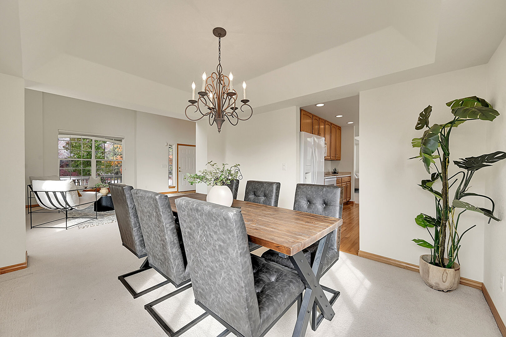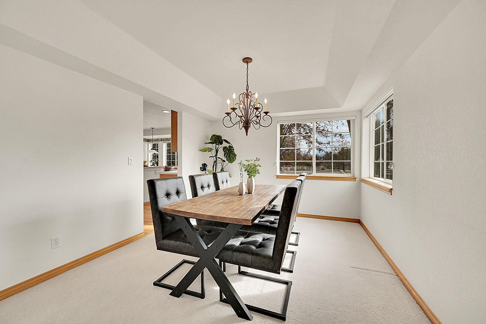 Baseboards Wall, Carpet, Drywall, Natural Light, Notable Chandelier, Recessed Lighting, Tray Ceiling, Vent, Drywall, Notable Chandelier