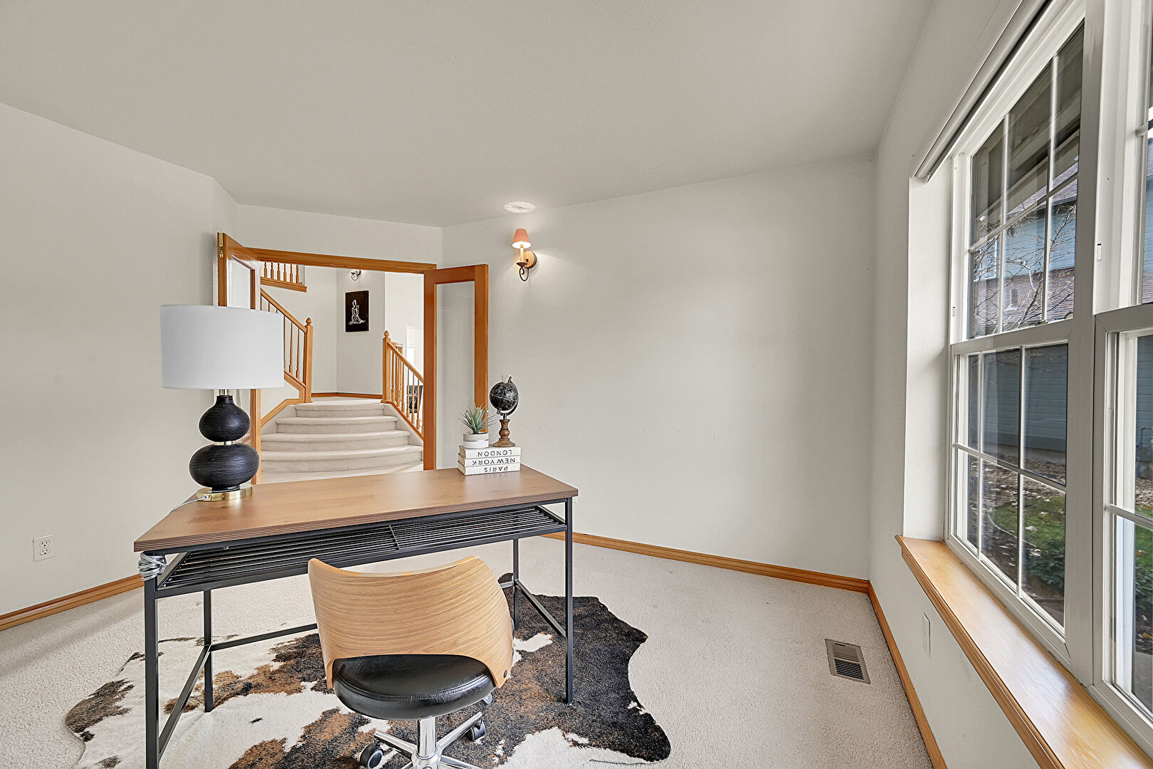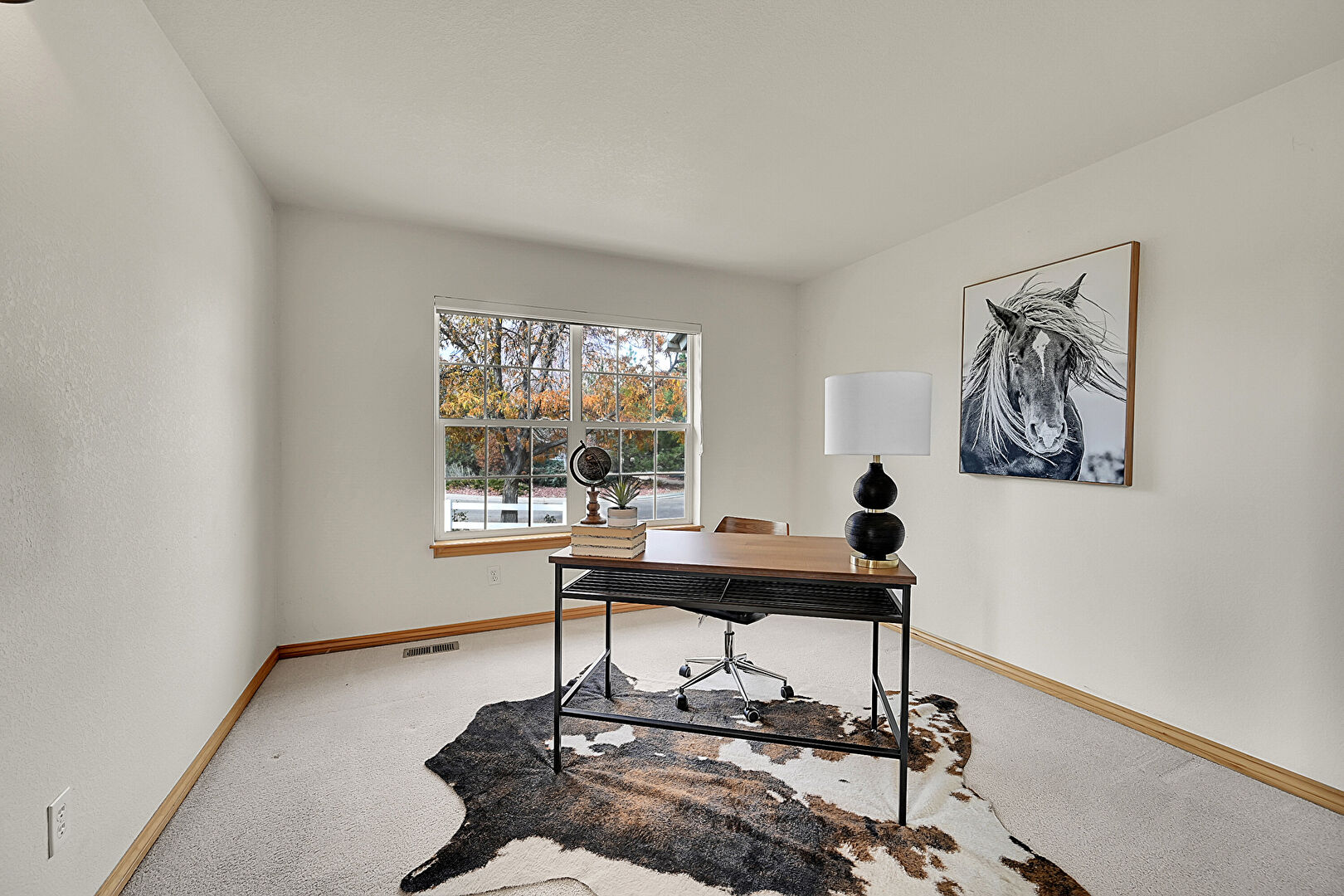 Baseboards Wall, Carpet, Drywall, Natural Light, Office Area, Vent