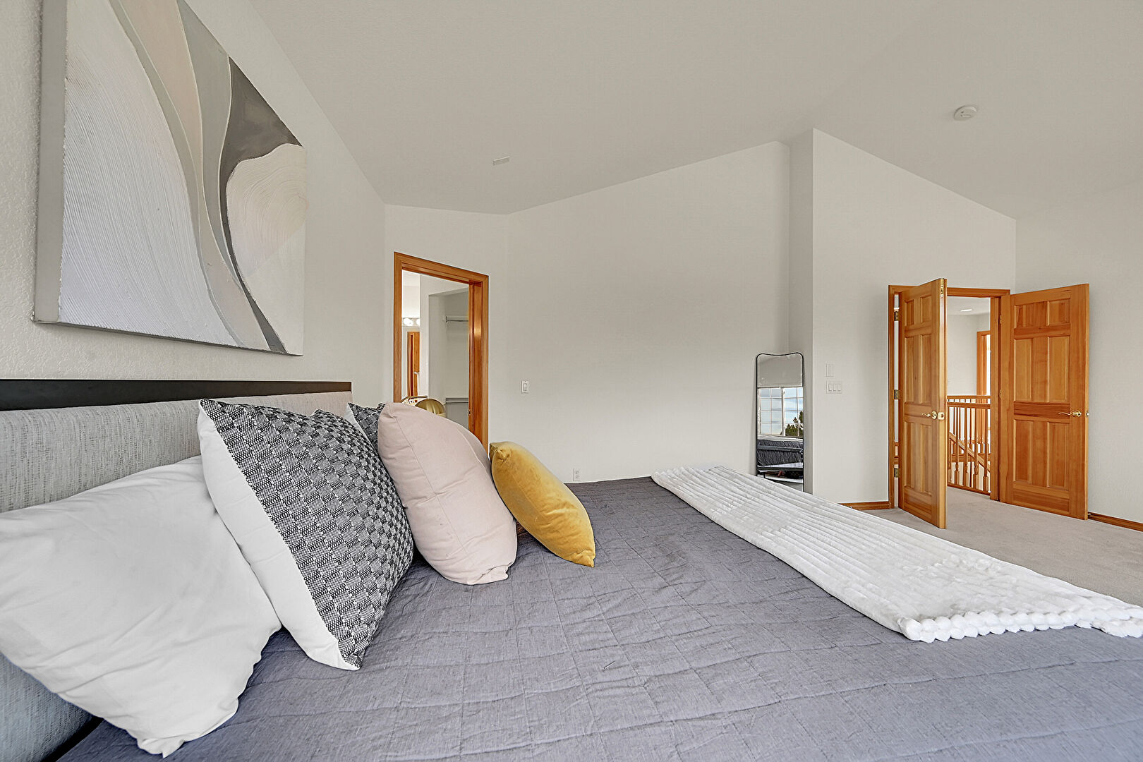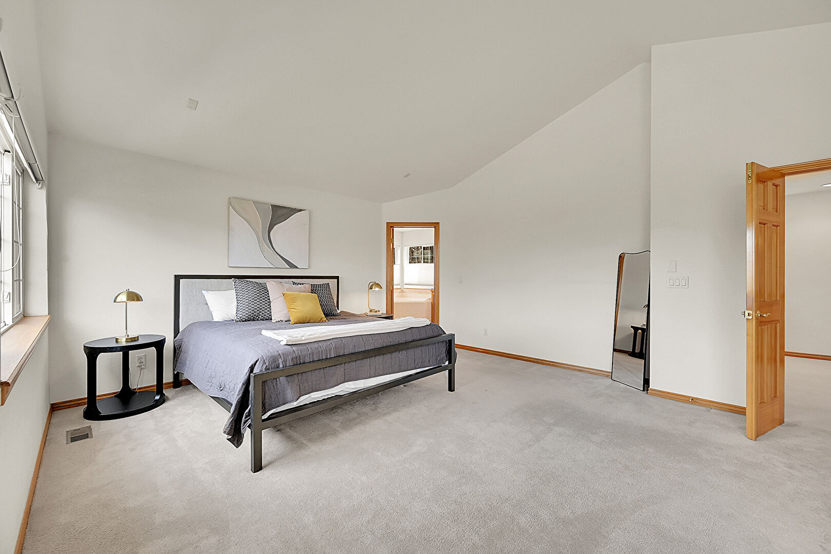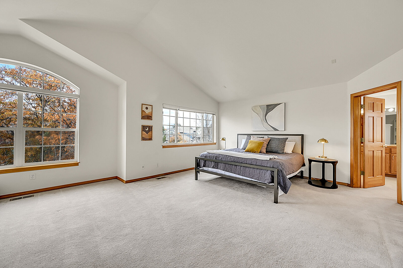 Baseboards Wall, Carpet, Cathedral Ceiling, Drywall, Ensuite Bathroom, High Ceiling, Natural Light, Vaulted Ceiling, Vent, Baseboards Wall, Carpet, High Ceiling, Natural Light, Vaulted Ceiling