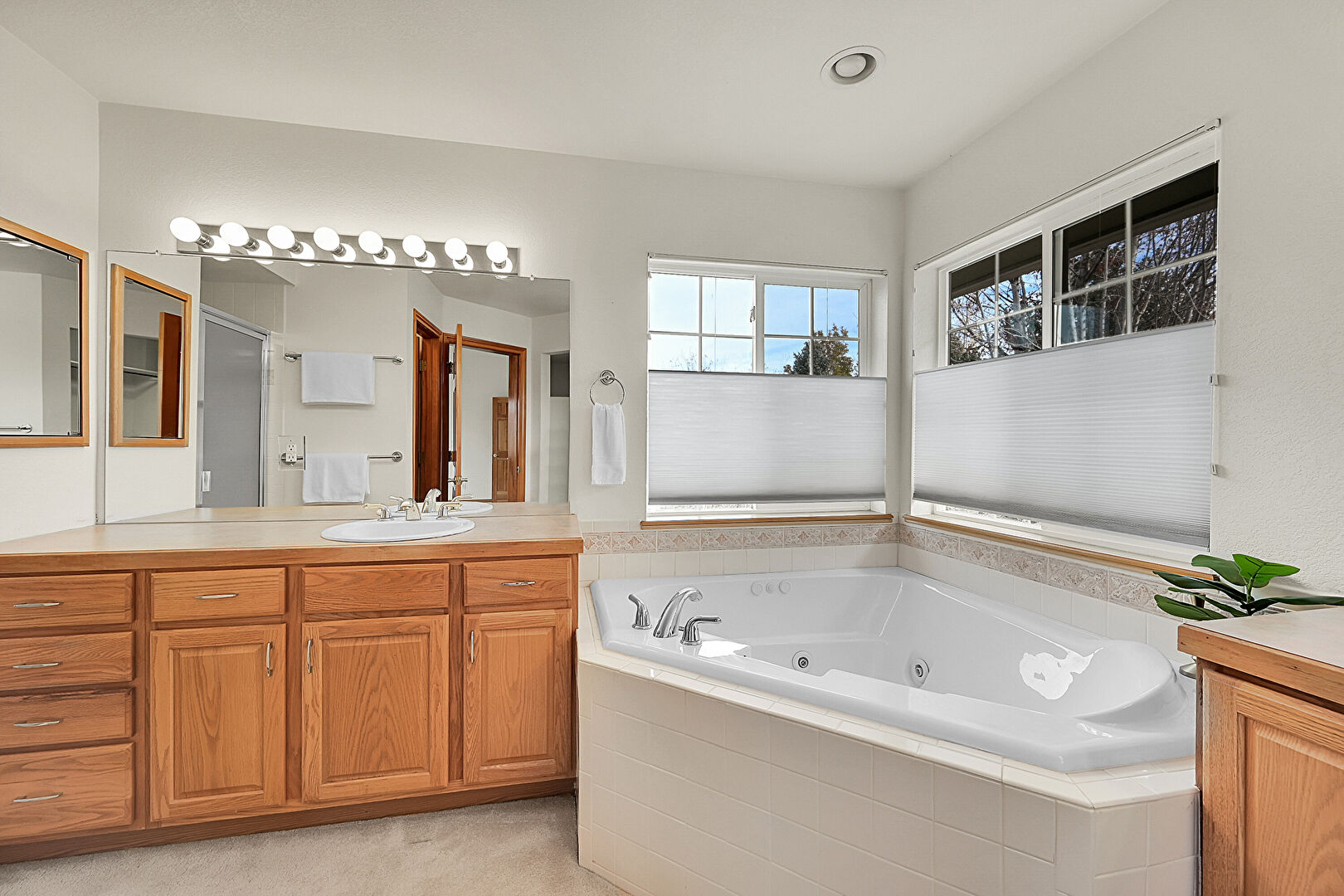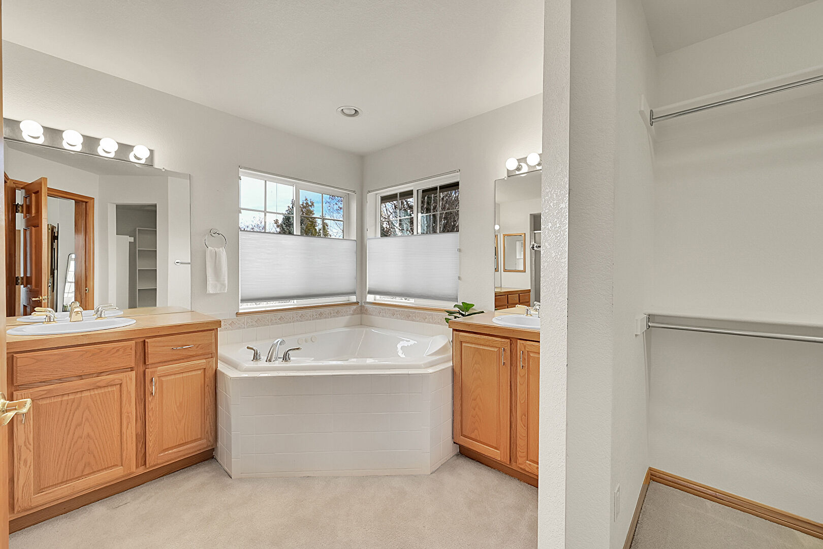 Baseboards Wall, Carpet, Closet, Drywall, Full Bathroom, Natural Light, Recessed Lighting, Two Single Vanities, Vanity, Vent, Water Closet, Ensuite Bathroom, Recessed Lighting, Vanity