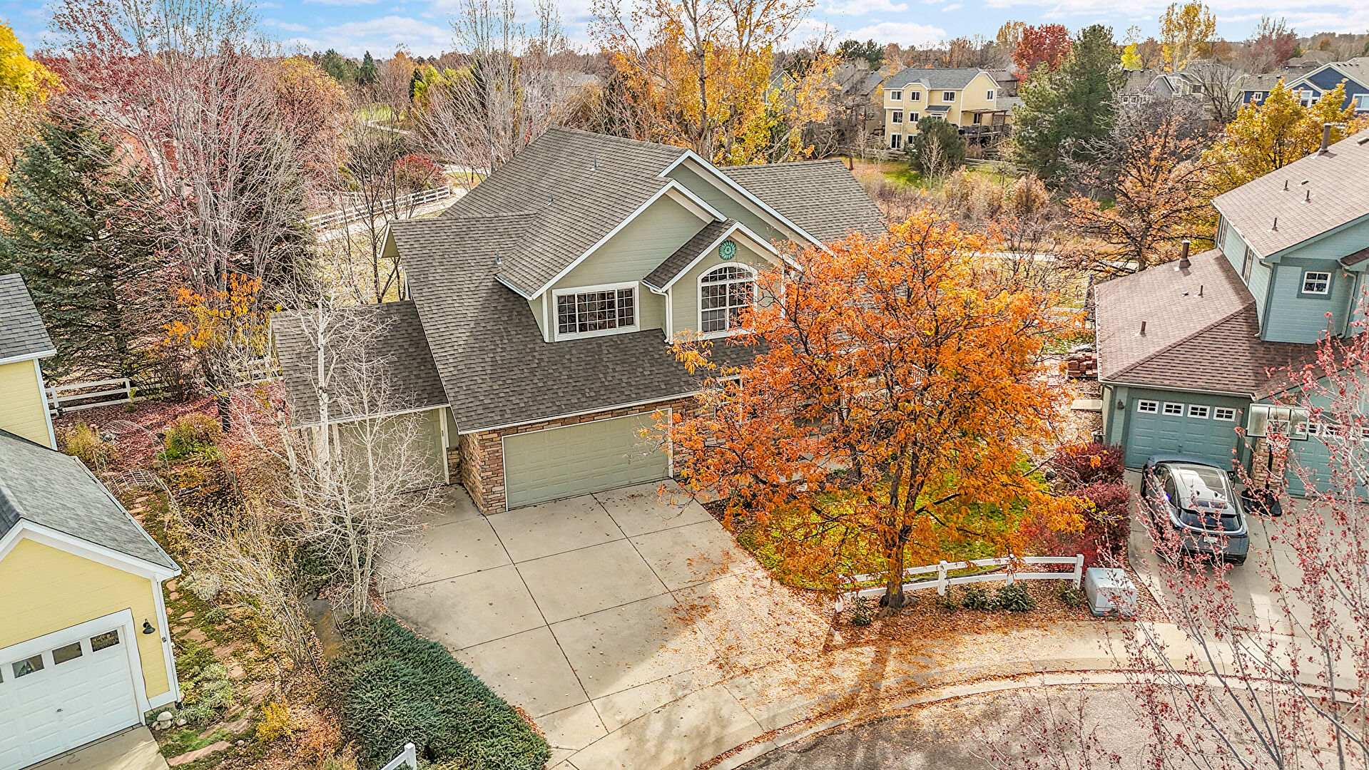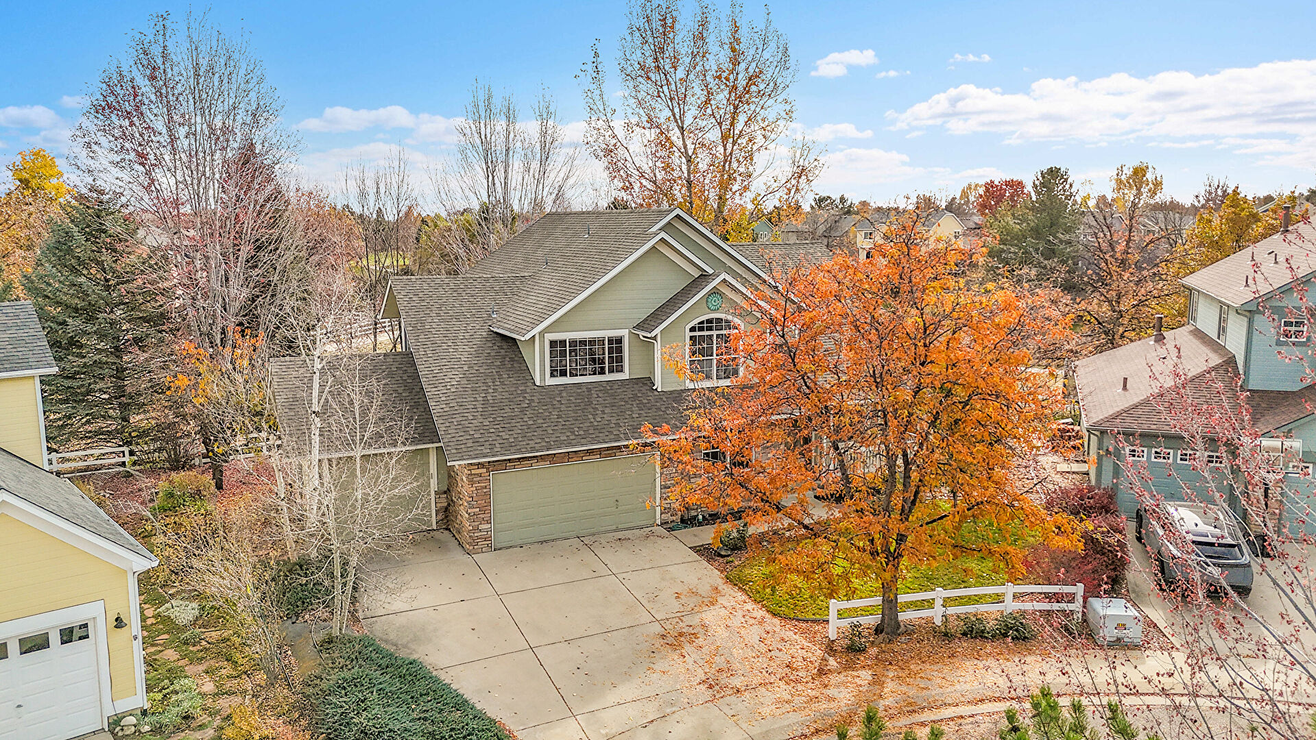 Built In Garage, Dormer Roof, Driveway, Fence, Forest View, Horizontal Siding, Lawn, Mountain View, Residential View, Shingle Roof, Stone Siding, Woods View, Fence, Forest View, Horizontal Siding, Mountain View, Residential View, Stone Siding