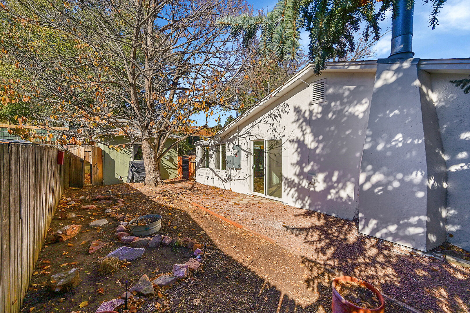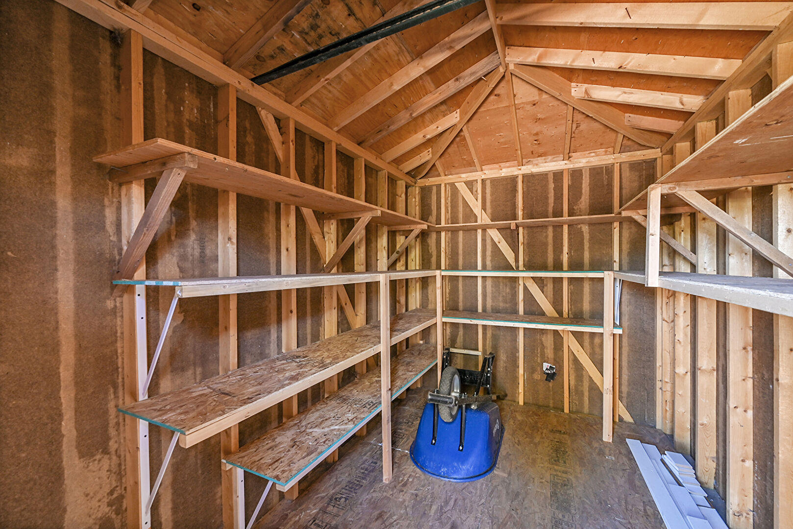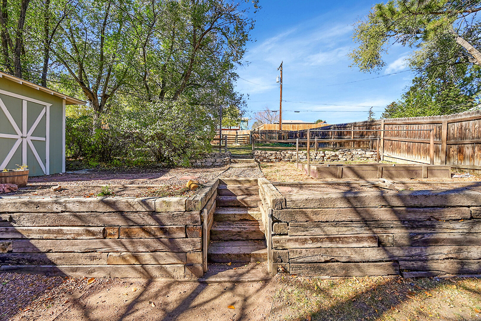 Fence, Fire Pit, Garden, Gutters, Horizontal Siding, Lawn, Outdoor Structure, Shed, Shingle Roof, Stucco Siding, Downspout, Fence, Lawn, Stucco Siding