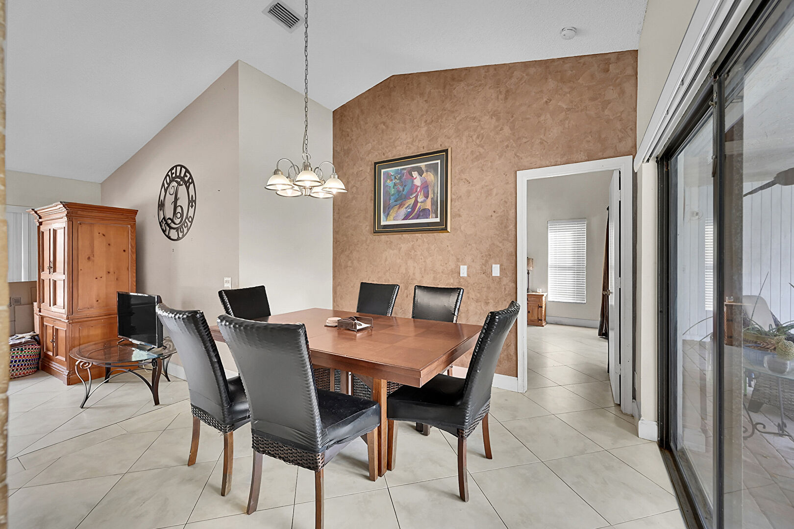 Accent Wall, Baseboards Wall, Ceiling Fan, Drywall, High Ceiling, Natural Light, Notable Chandelier, Textured Ceiling, Tile Floor, Vaulted Ceiling, Vent, Wallpaper Wall, Baseboards Wall, Natural Light, Notable Chandelier