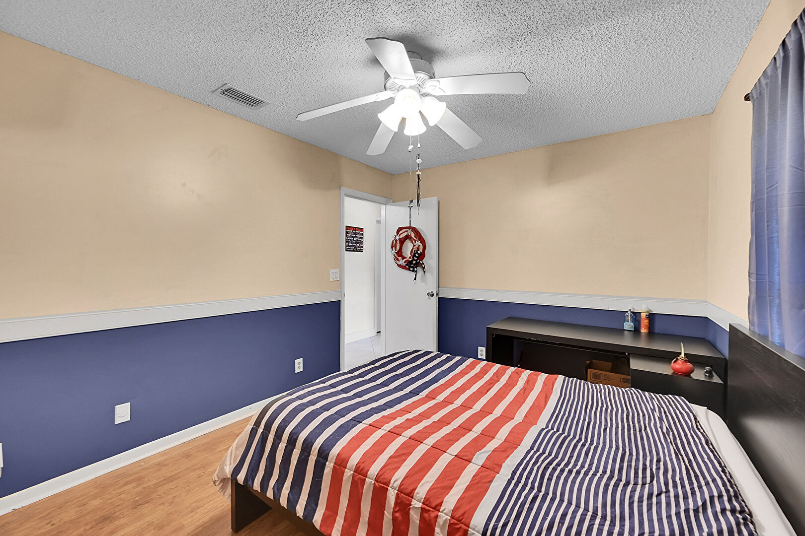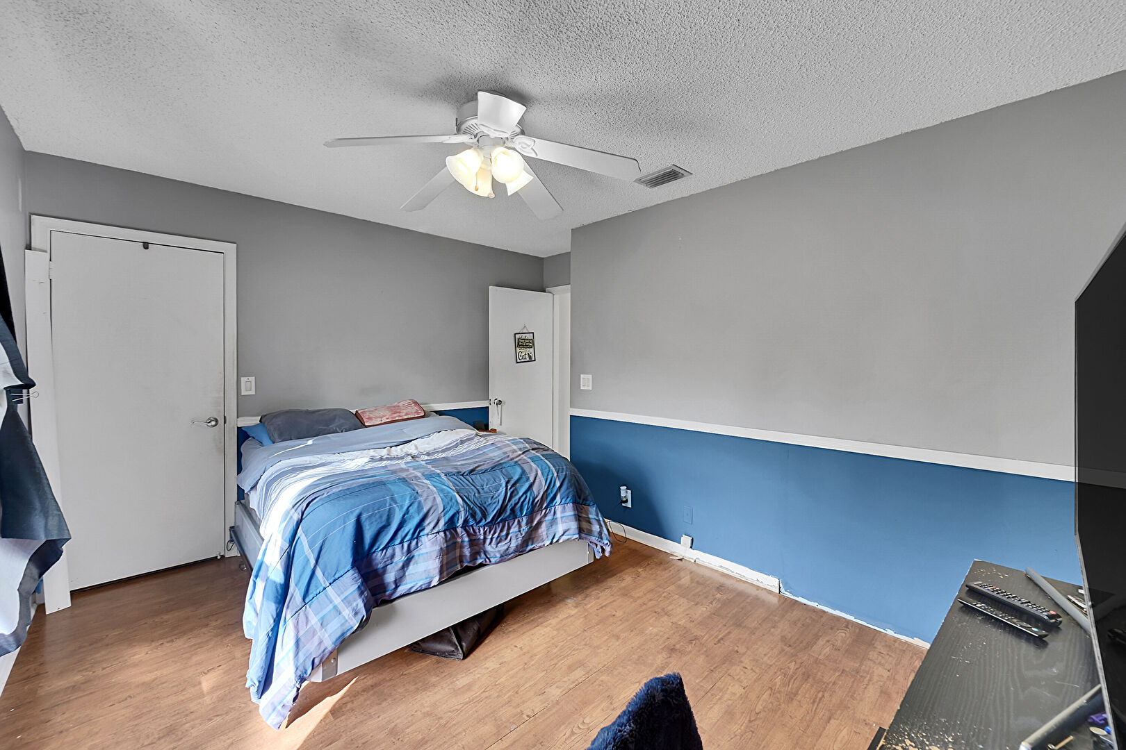 Baseboards Wall, Ceiling Fan, Drywall, Natural Light, Office Area, Textured Ceiling, Two Closets, Vent, Wood Finish Floor, Ceiling Fan, Drywall, Vent, Wood Finish Floor
