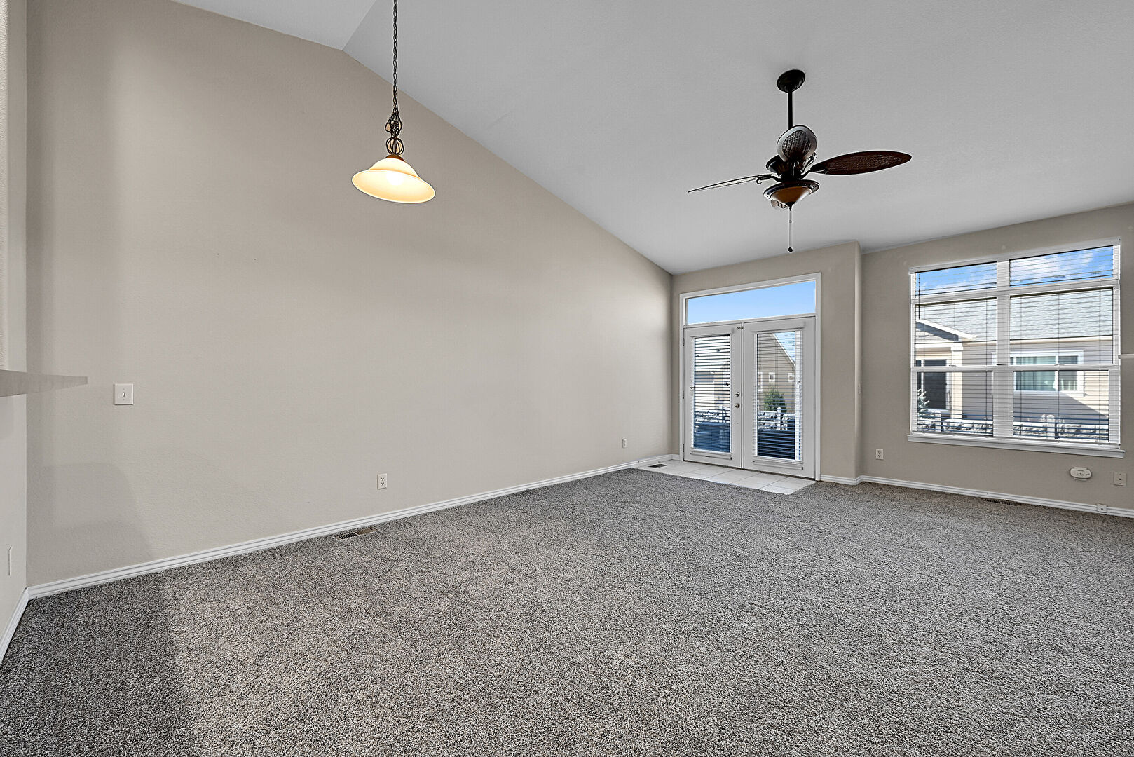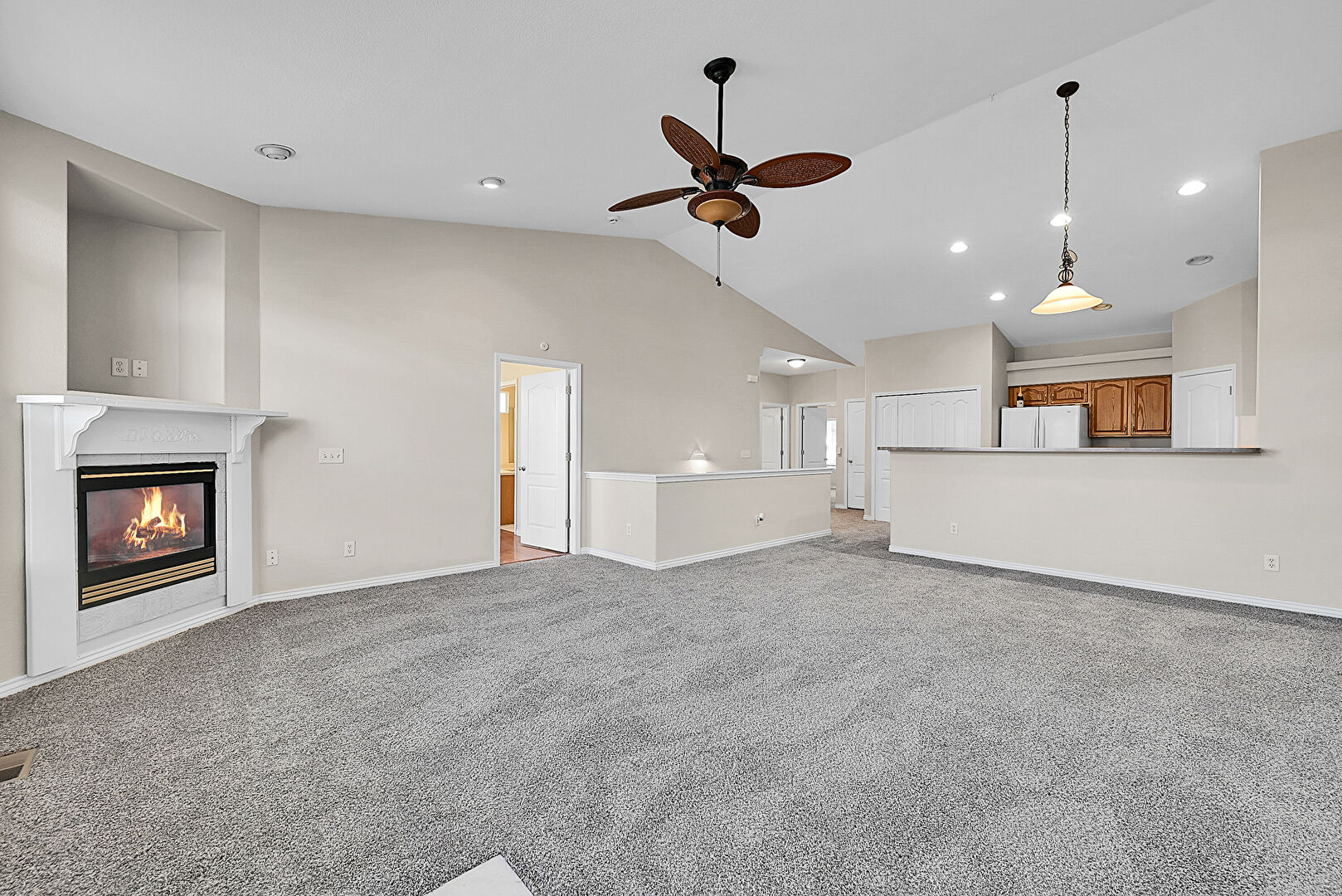 Baseboards Wall, Carpet, Cathedral Ceiling, Ceiling Fan, Drywall, Fireplace, French Doors, High Ceiling, Natural Light, Recessed Lighting, U Shaped Kitchen, Vaulted Ceiling, Vent, Baseboards Wall, Ceiling Fan, Fireplace