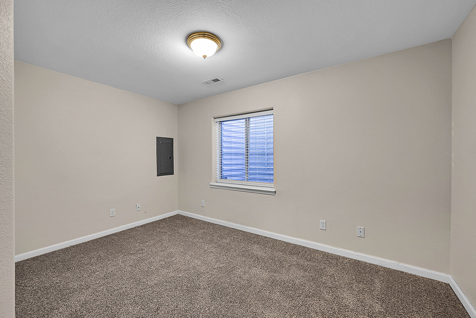 Baseboards Wall, Carpet, Drywall, Electric Panel, Natural Light, Textured Ceiling, Vent, Carpet, Textured Ceiling