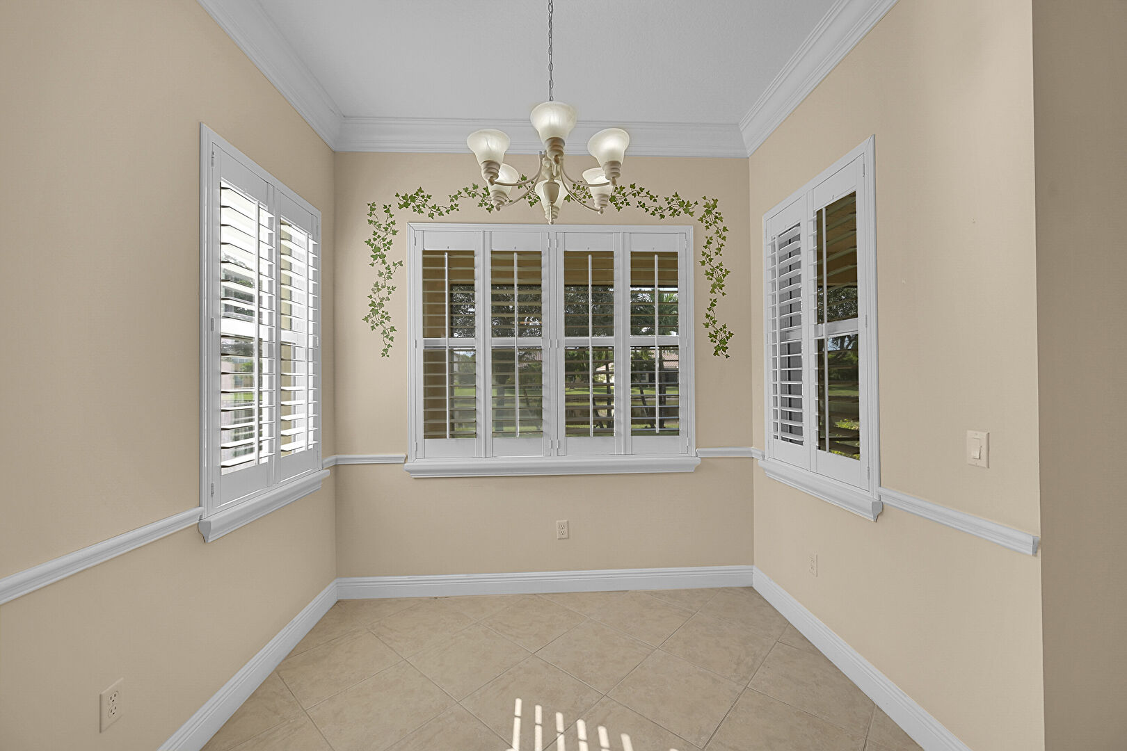 Baseboards Wall, Crown Molding, Natural Light, Notable Chandelier, Tile Floor, Drywall